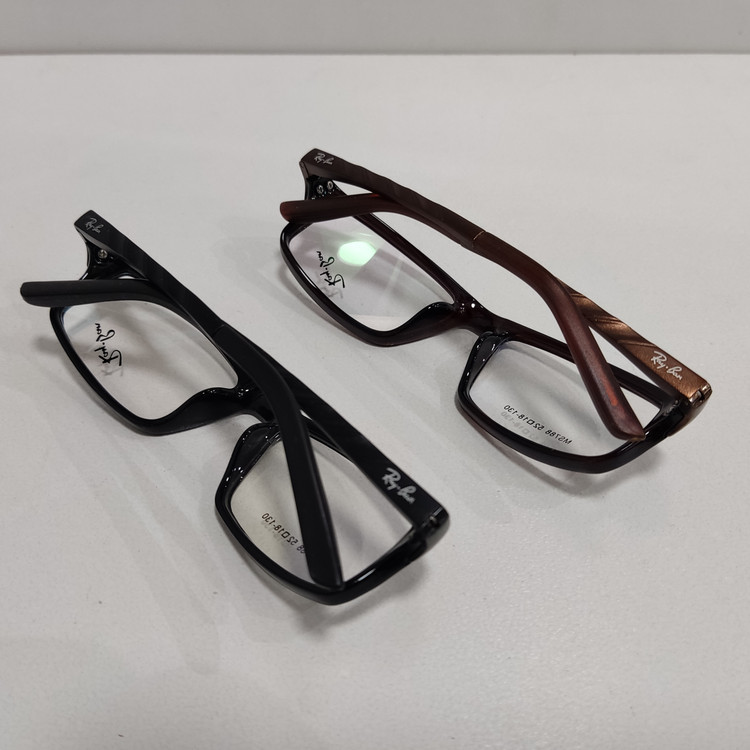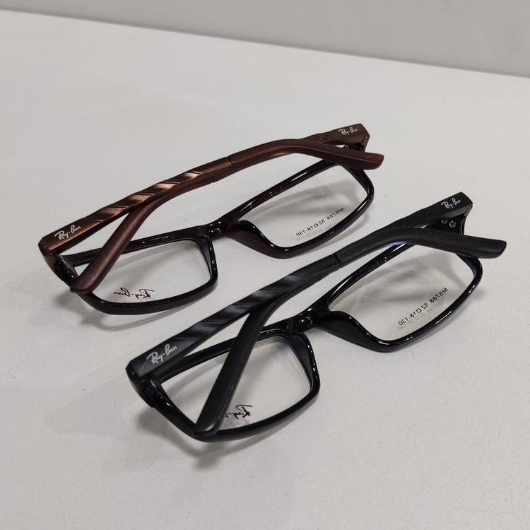 فریم عینک طبی بیس دار ری بن در دو رنگ مشکی و قهوه ای با جنس کائوچویی و دسته لولا فنر با سایز 52*18*130 که سایر مشخصات و کیفیت در تصاویر و ویدیو مشخص است.