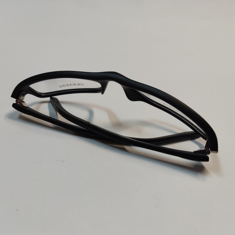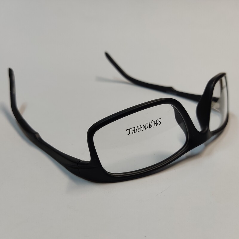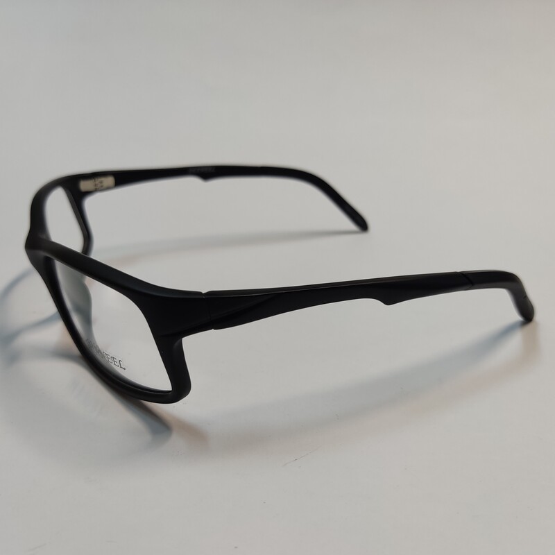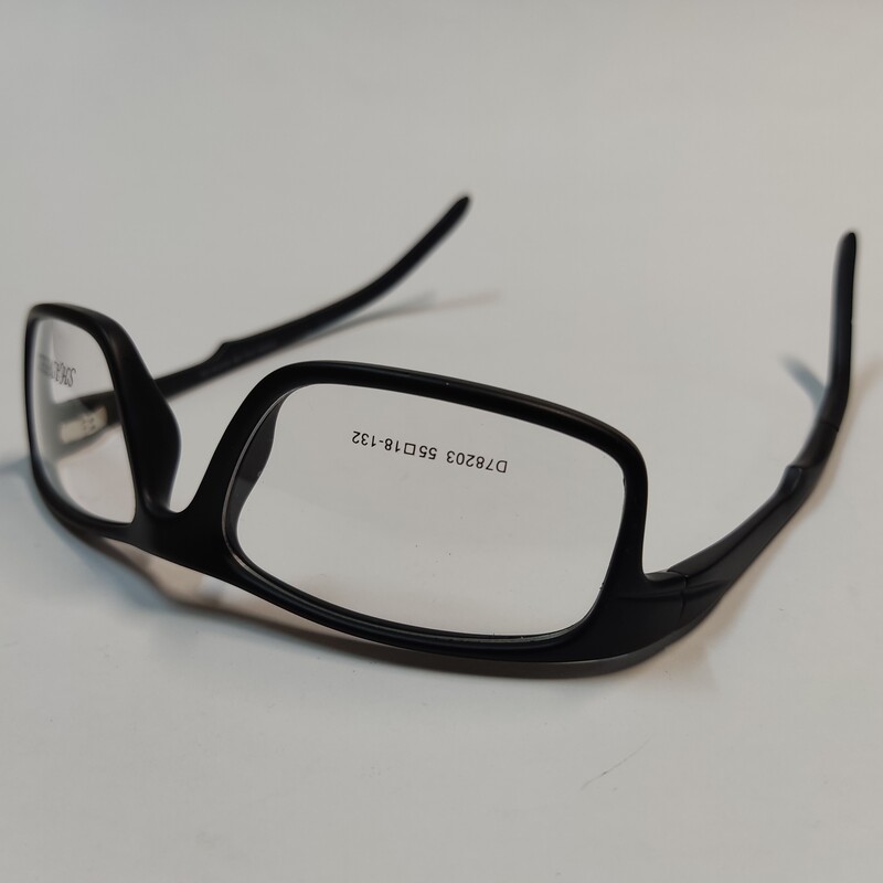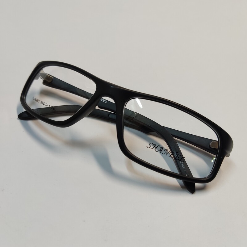 فریم عینک طبی shaneel D78203 با فریم کایوچویی مشکی مات و دسته های لولا فلزی ساده با روکش انتهای دسته(پشت گوش) نرم با سایز 55*18*132 و ارتفاع عدسی حدود 32 و قسمت جلوی فریم از دسته تا دسته در محدوده لولا 137 میباشد.