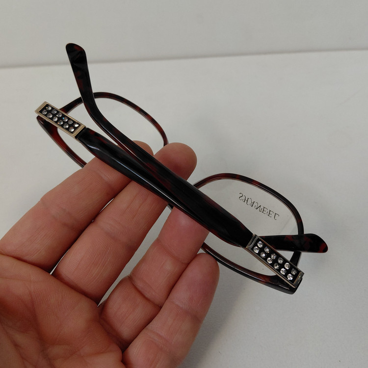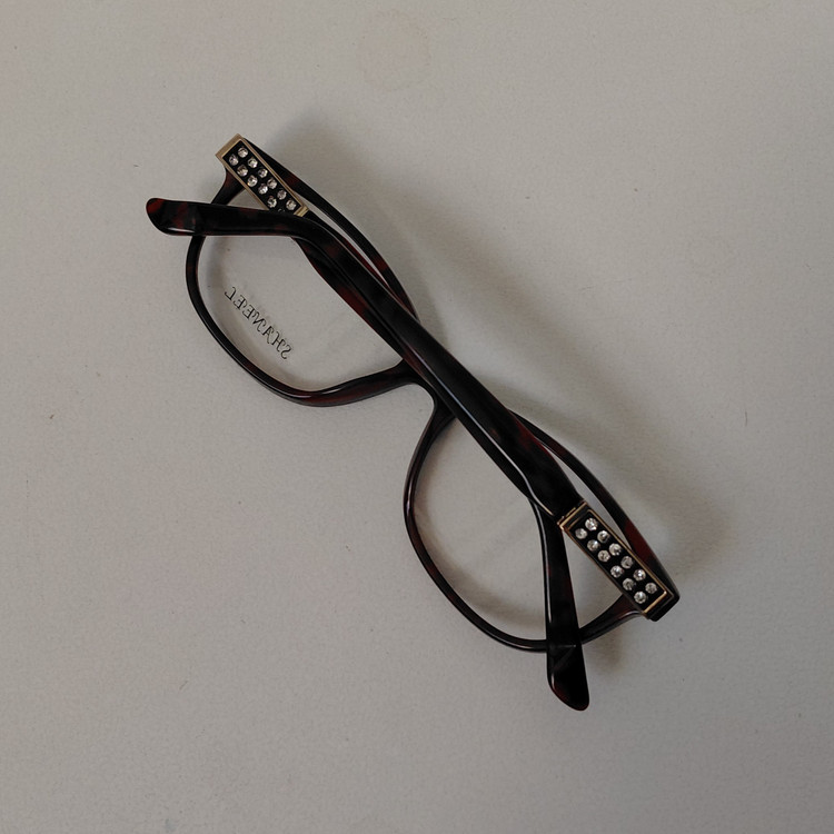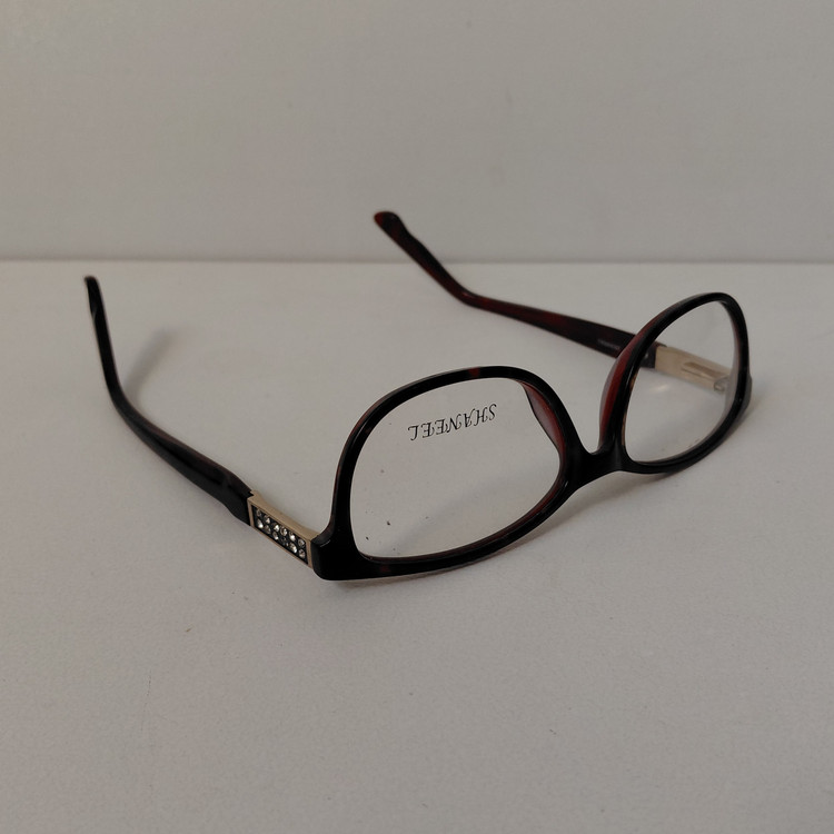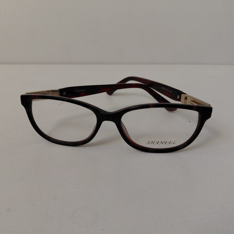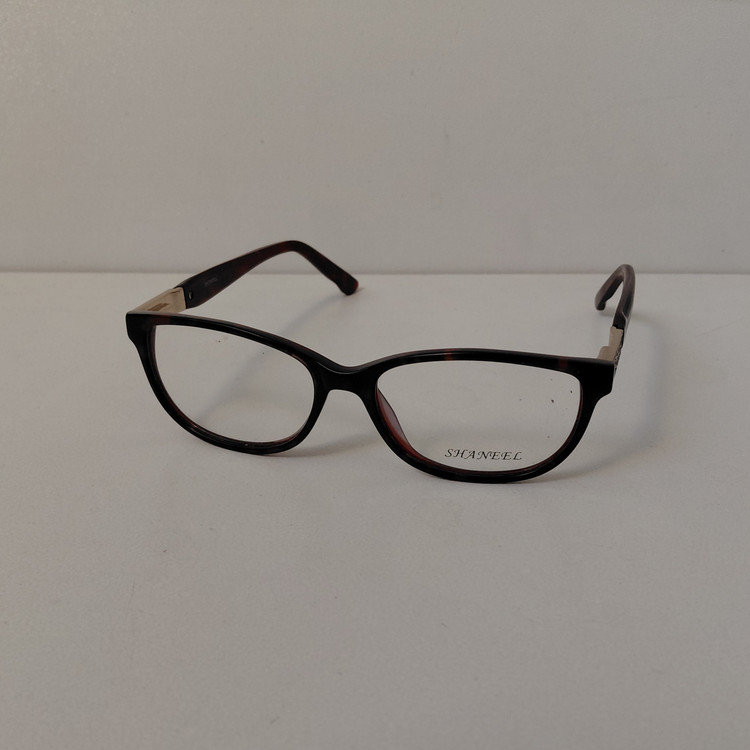 فریم عینک طبی زنانه SHANEEL با فریم به رنگ قهوه ای پلنگی طور و دسته های نگین دار با لولا فنری و سایز 51*17*140 که قسمت جلوی فریم 134 و ارتفاع عدسی 35 بوده و رنگ و سایر مشخصات مطابق تصاویر میباشد.