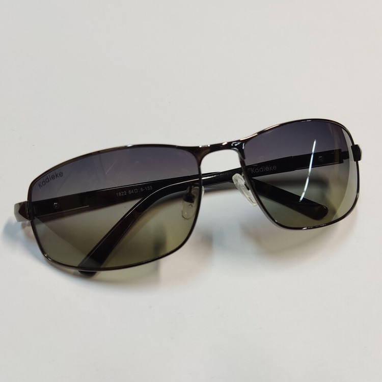 عینک آفتابی مردانه پلاریزه مارک kadleke 1822 با عدسی پلاریزه و دسته های کائوچویی لولا فلزی ساده با مشخصات مطابق تصاویر و سایز 64*16*133 و ارتفاع عدسی حدود 40 میباشد.
