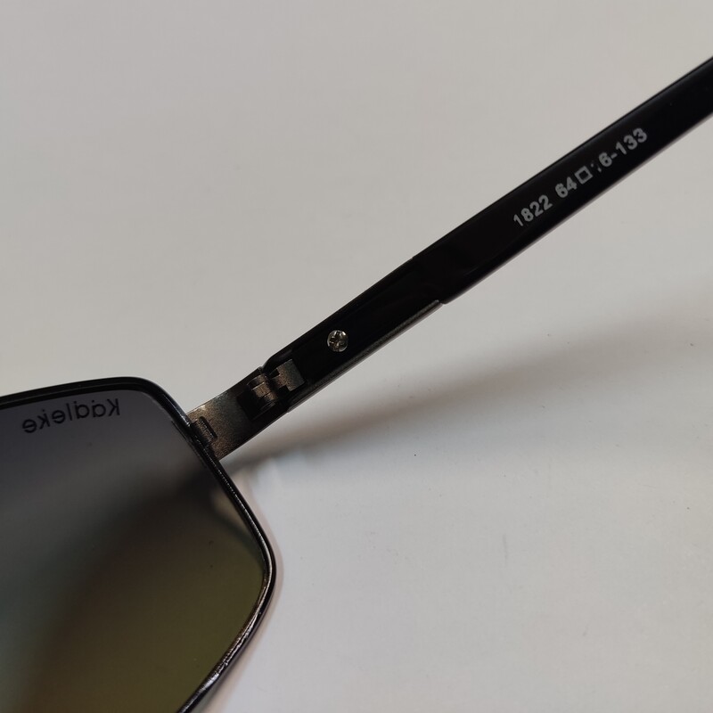 عینک آفتابی مردانه پلاریزه مارک kadleke 1822 با عدسی پلاریزه و دسته های کائوچویی لولا فلزی ساده با مشخصات مطابق تصاویر و سایز 64*16*133 و ارتفاع عدسی حدود 40 میباشد.