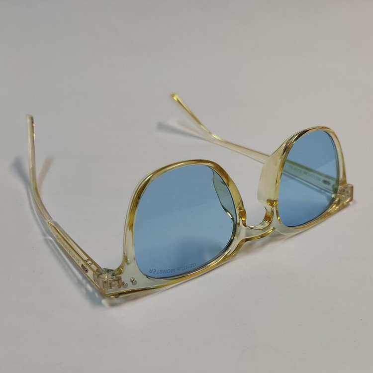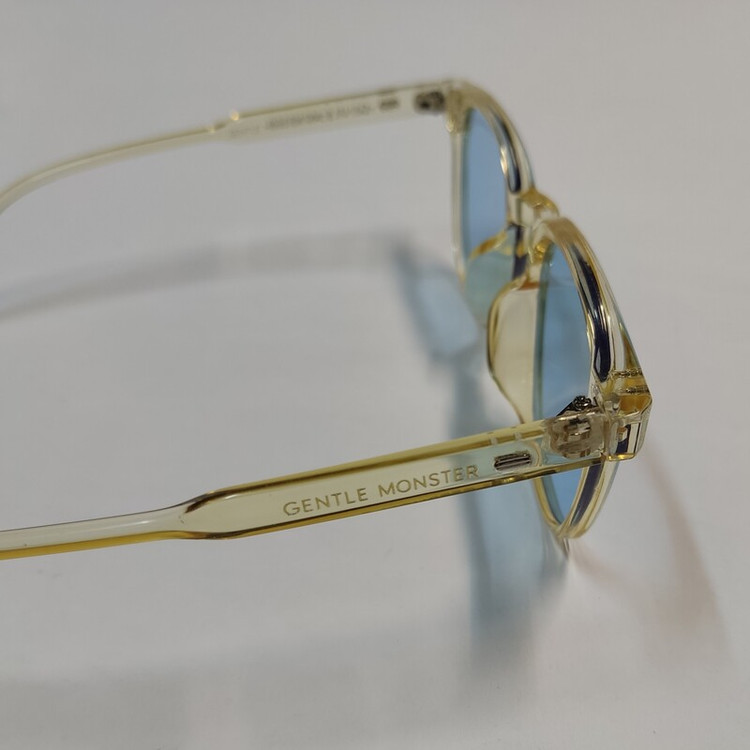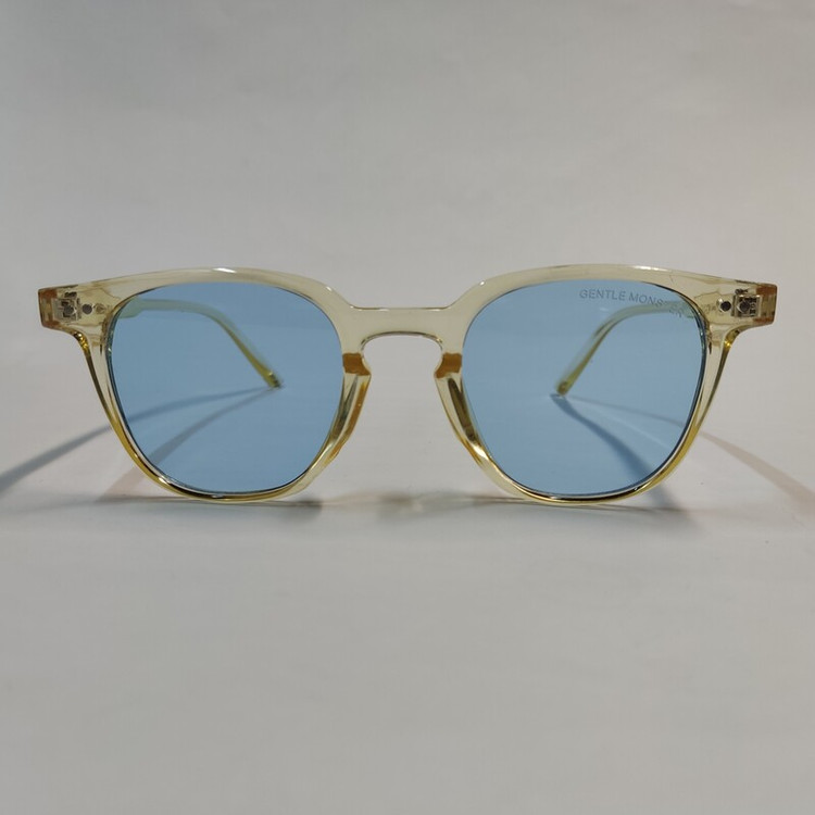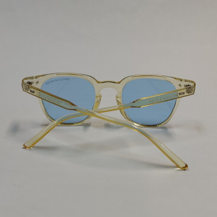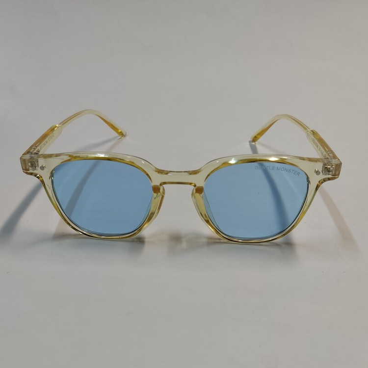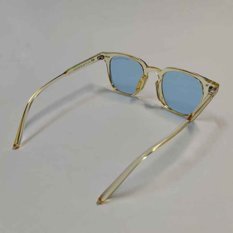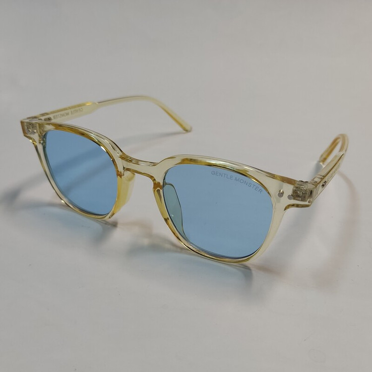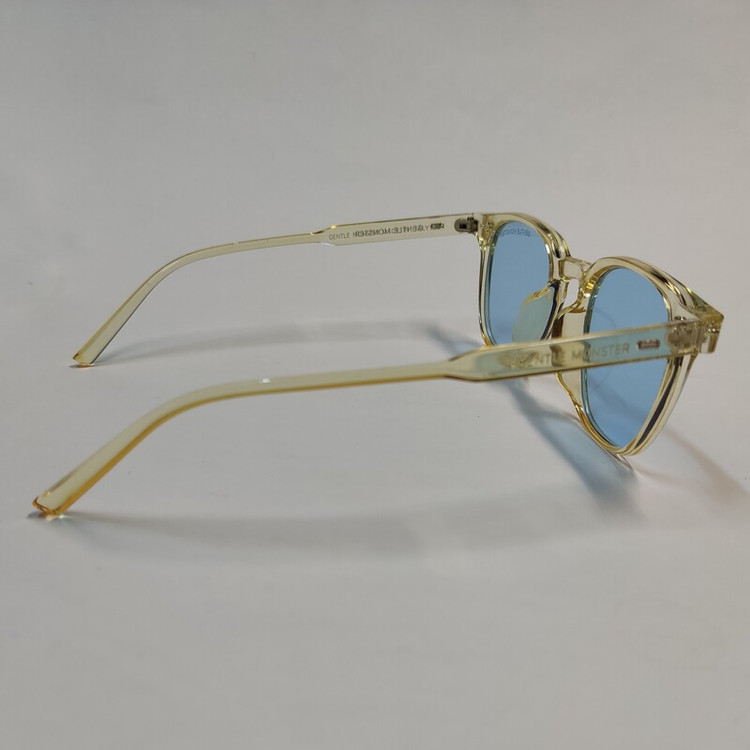 عینک مارک جنتل مانستر GENTLE MONSTER با عدسی آبی مناسب استفاده برای شب و یا مد و زیبایی با سایز 46*14*140 بسیار شیک و لاکچری با دسته های دارای لولا فلزی ساده..