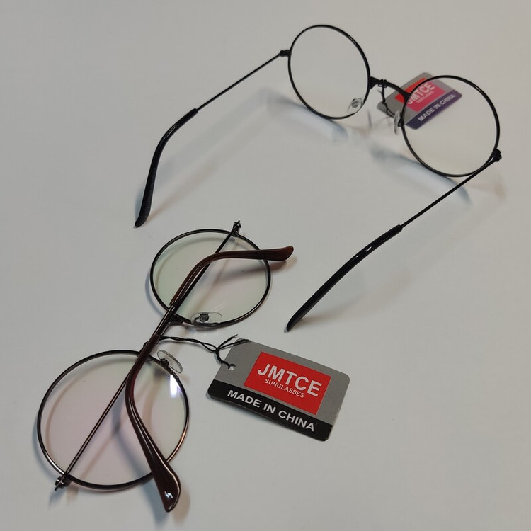 عینک فلزی گرد محصول چین و در 2رنگ مشکی و قهوه ای است. وزن عینک بسیار سبک و سایز آن حدود 52*22*138 میباشد.