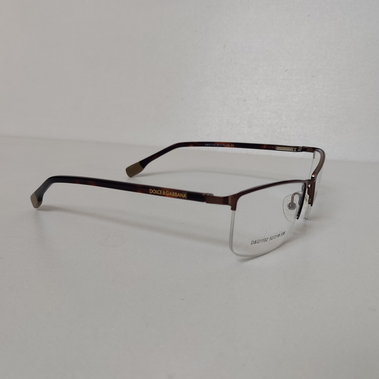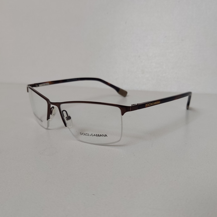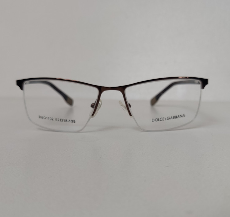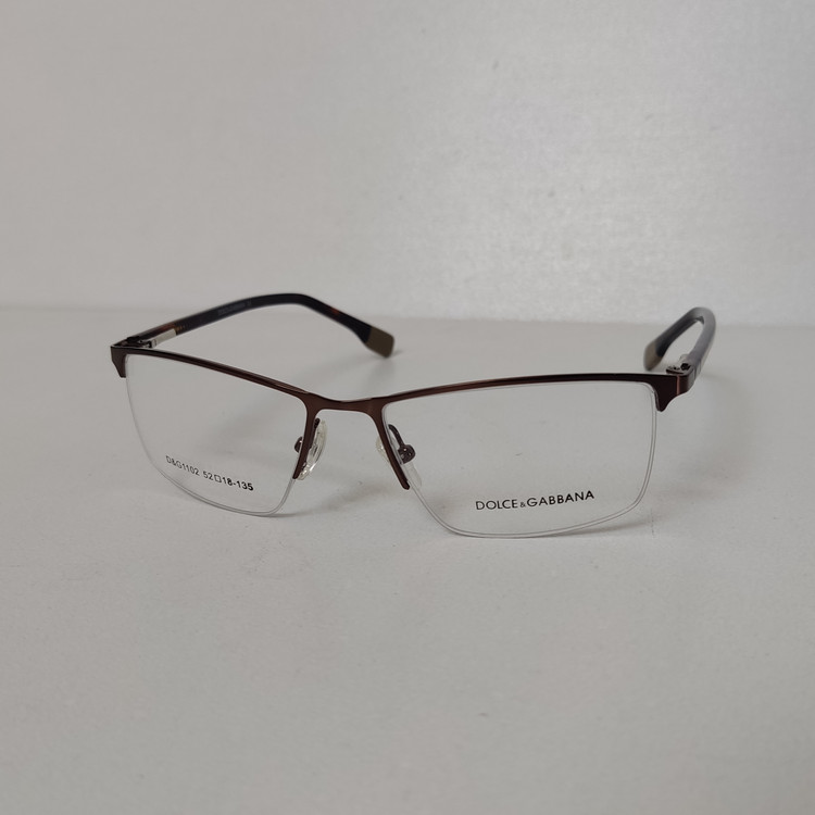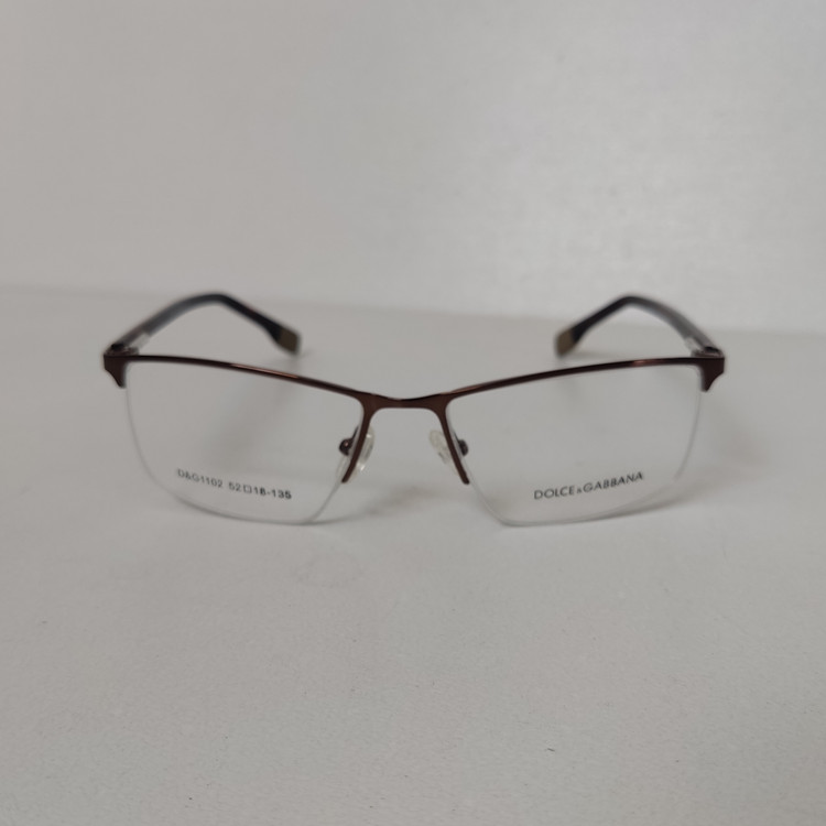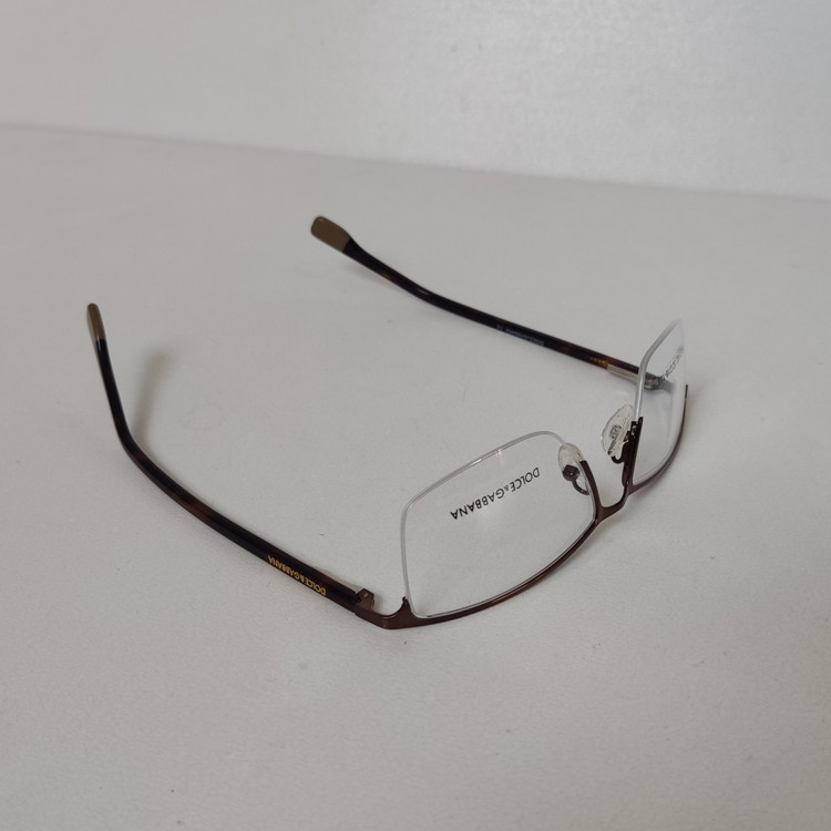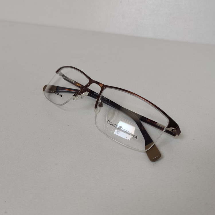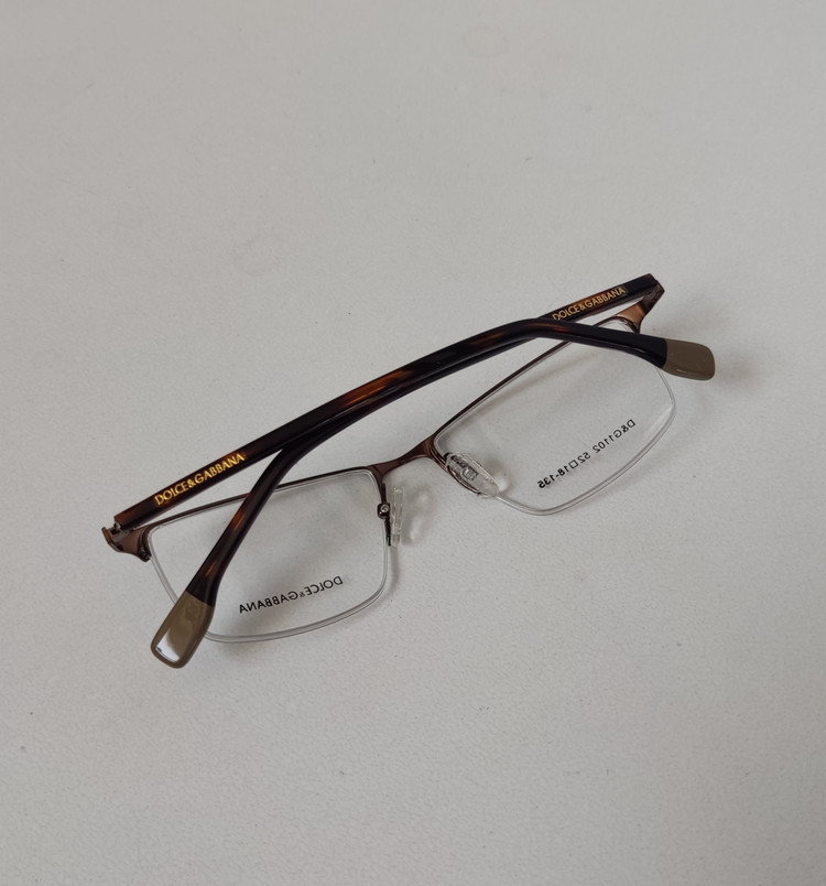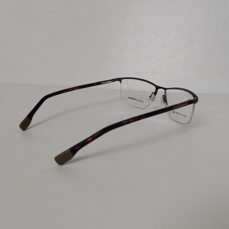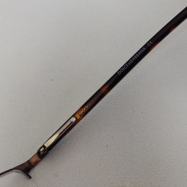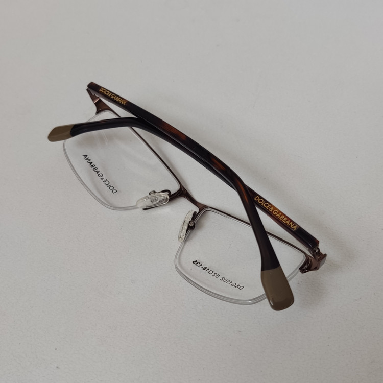 فریم عینک طبی زنانه مار ک DOLCE & GABBANA مدل نیم فریم به رنگ قهوه ای با دسته های لولا فنر و سایز 52*18*135 که قسمت جلوی فریم از دسته تا دسته 138 و ارتفاع عدسی حدود 32 و سایر مشخصات مطابق تصاویر میباشد.