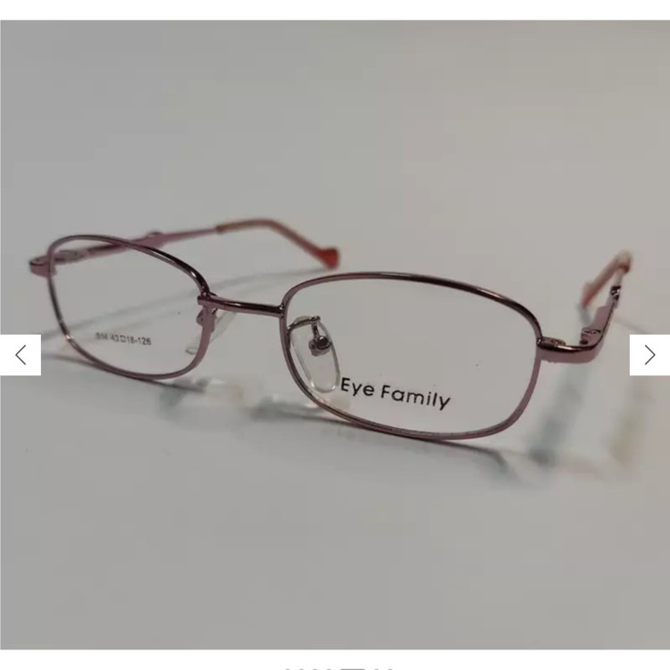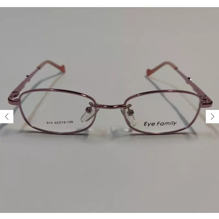 فریم عینک طبی بچه گانه فلزی صورتی با مشخصات مطابق تصاویر و ویدیو و سایز 43*18*126 که قسمت جلوی فریم از دسته تا دسته حدود 117 و ارتفاع عدسی حدود 26 بوده و دسته ها دارای لولا فنری است.