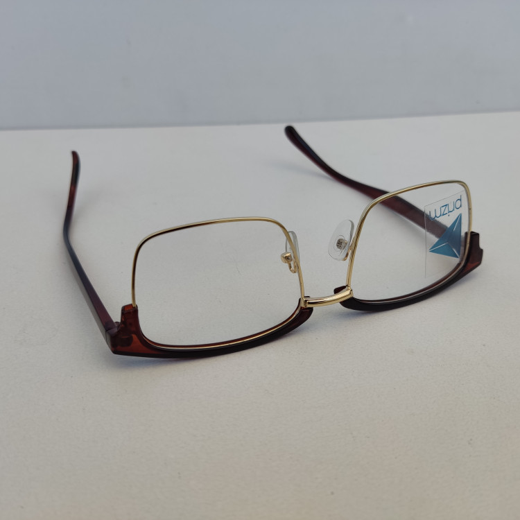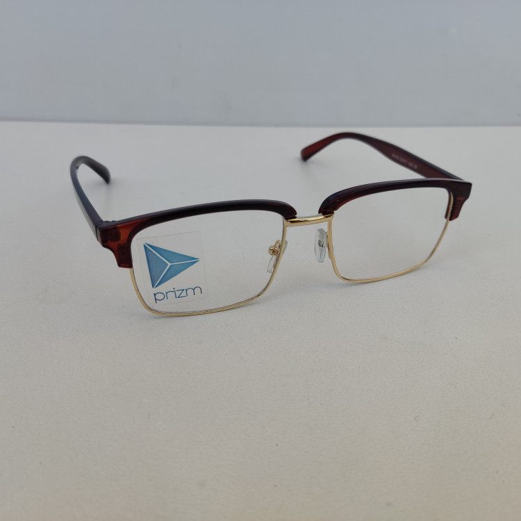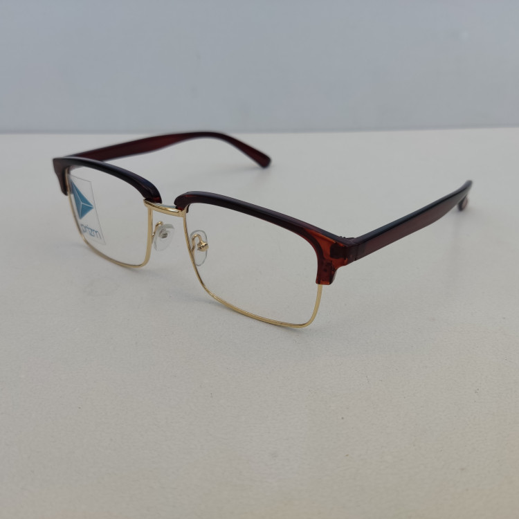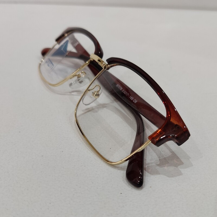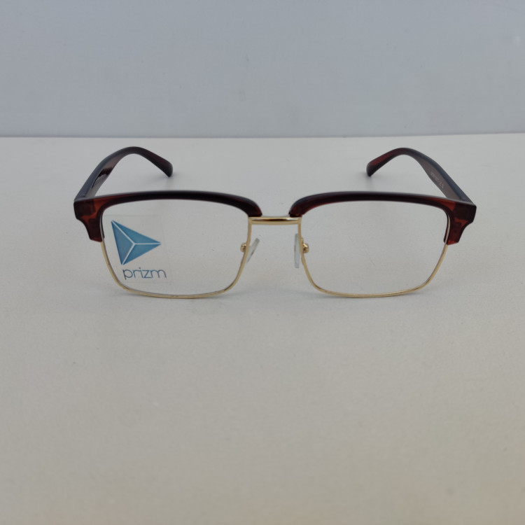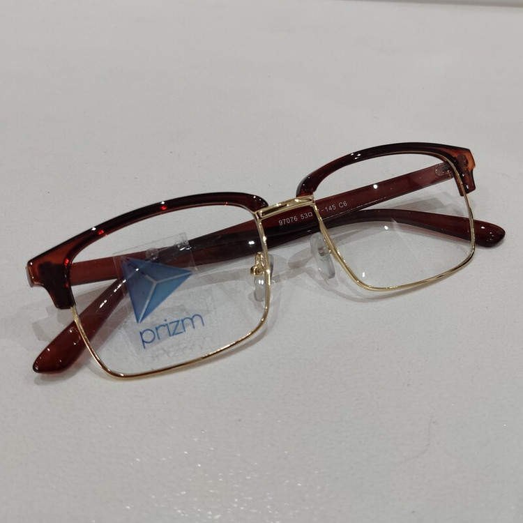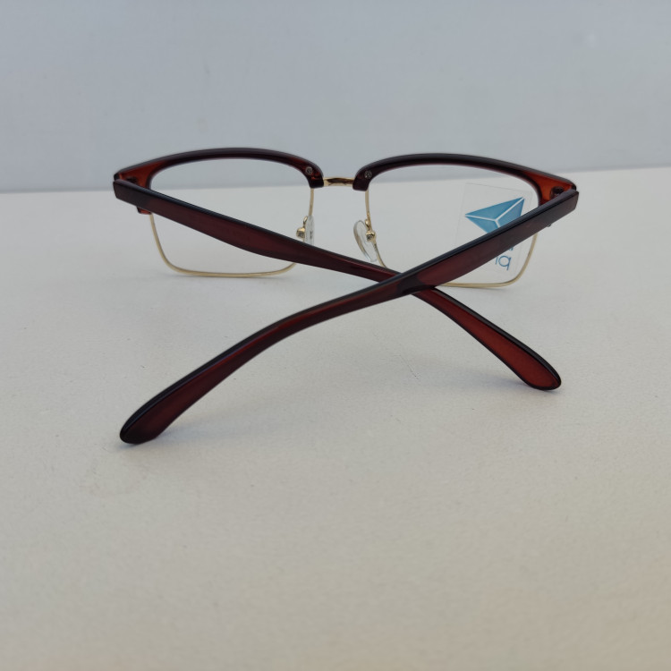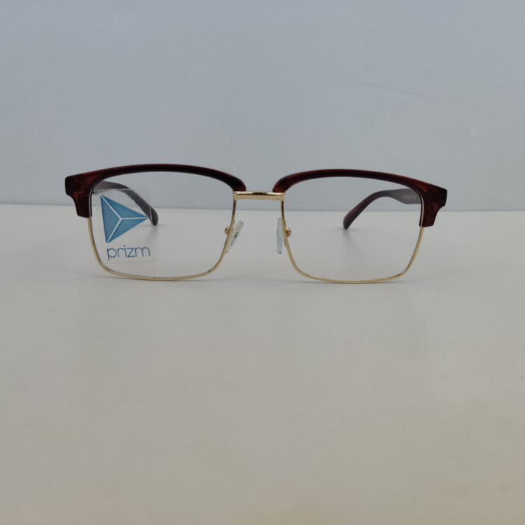 فریم عینک طبی مدل کلاب مستر مستطیلی با سایز 53*17*145 با فریم به رنگ مشکی و قهوه ای براق و با قسمت فلزی زیرین به رنگ طلایی مناسب زنانه و مردانه میباشد.