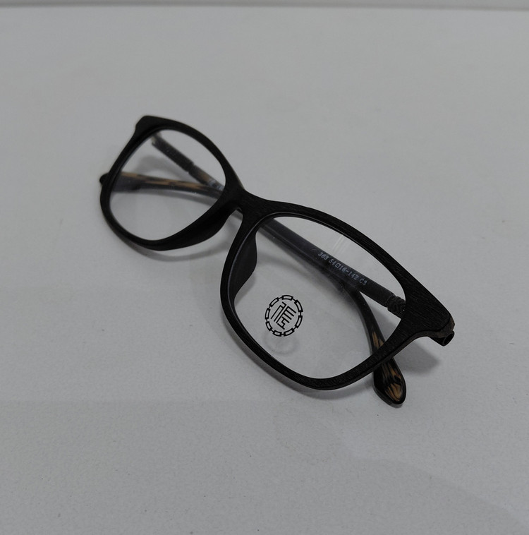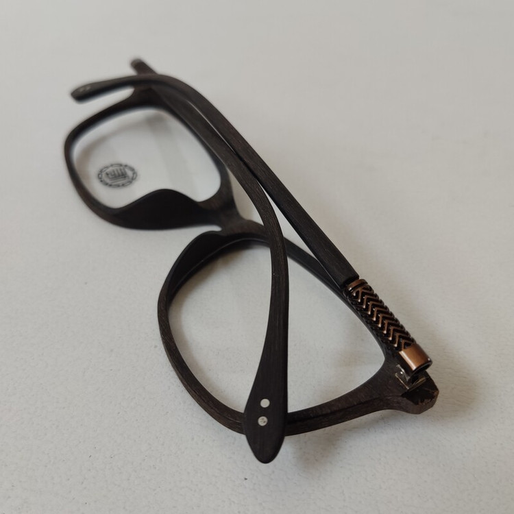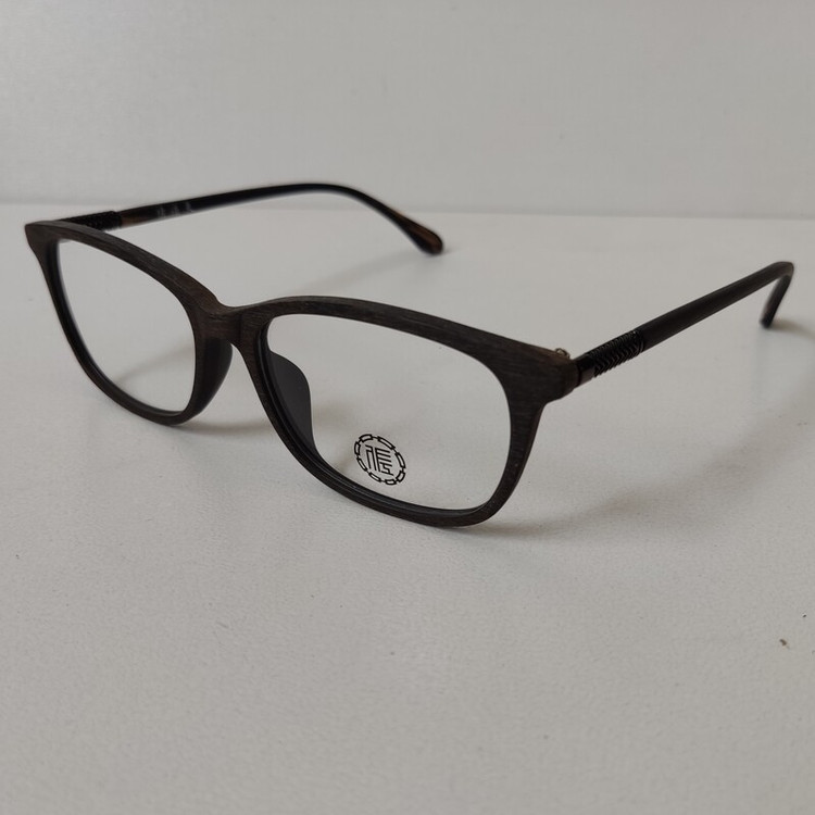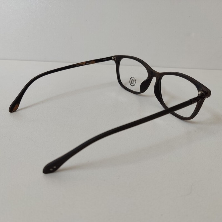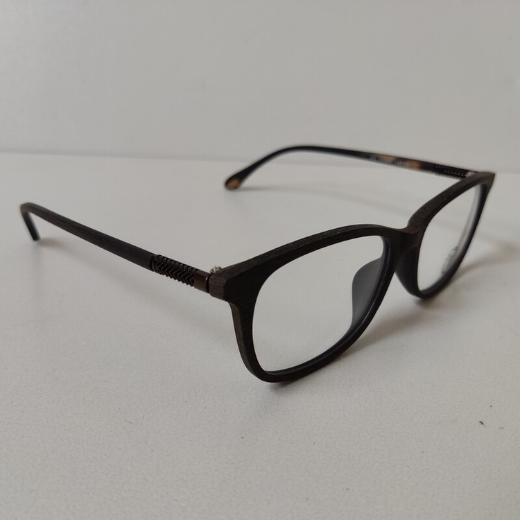 فریم عینک طبی طرح چوب با سایز 54*16*142 که قسمت جلوی فریم از دسته تا دسته حدود 142 و ارتفاع عدسی حدود 37 بوده و دسته ها دارای لولا فلزی ساده است.