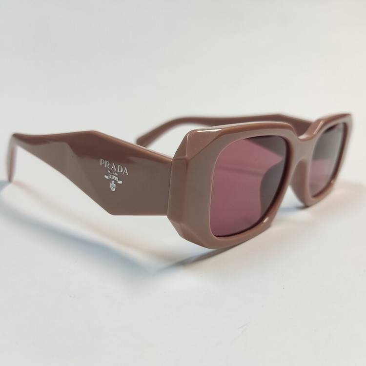 عینک آفتابی زنانه پرادا با فریم طرح سه بعدی و رنگ خاص و زیبا با سایز تقریبی 52*14*140 و عرض فریم حدود 146 که دسته ها لولا فلزی میباشد.