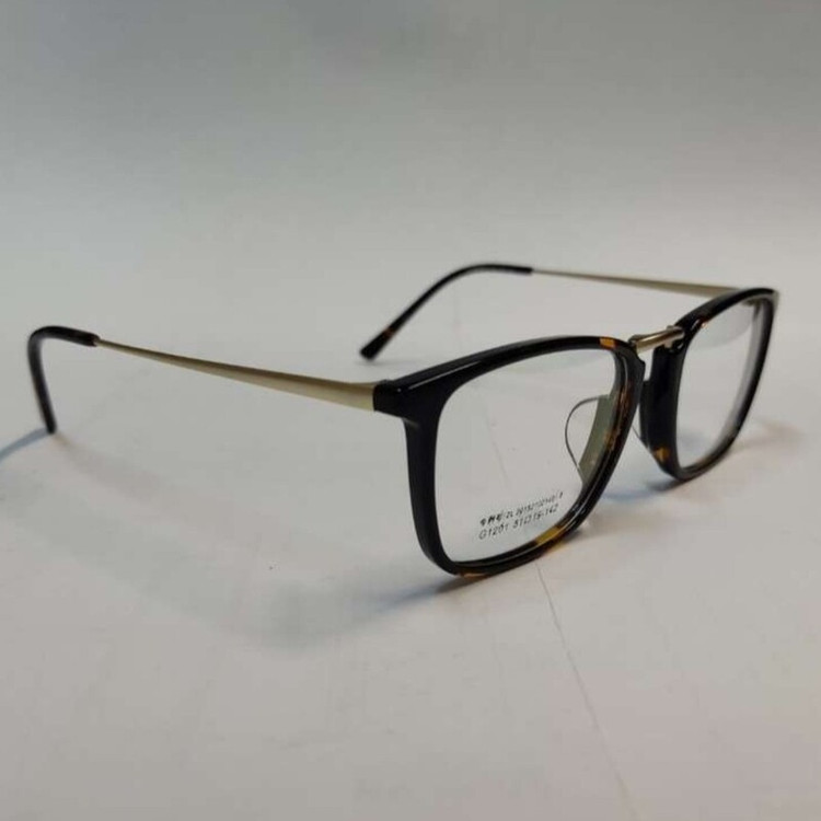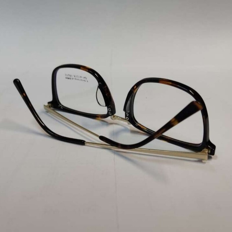 فریم عینک طبی زنانه با دسته های طلایی و لولا ساده و پل فلزی طلایی با فریم به رنگ قهوه ای مشکی است. سایز فریم 51*19*142 بوده و بسیار سبک است.