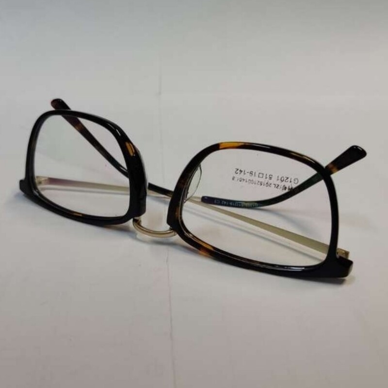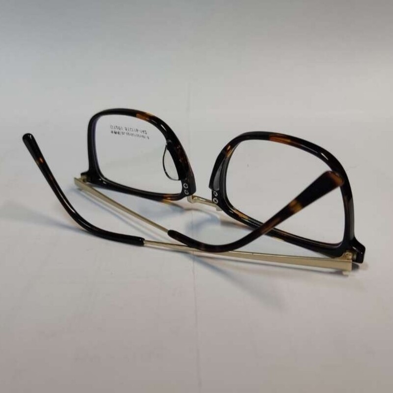 فریم عینک طبی زنانه با دسته های طلایی و لولا ساده و پل فلزی طلایی با فریم به رنگ قهوه ای مشکی است. سایز فریم 51*19*142 بوده و بسیار سبک است.