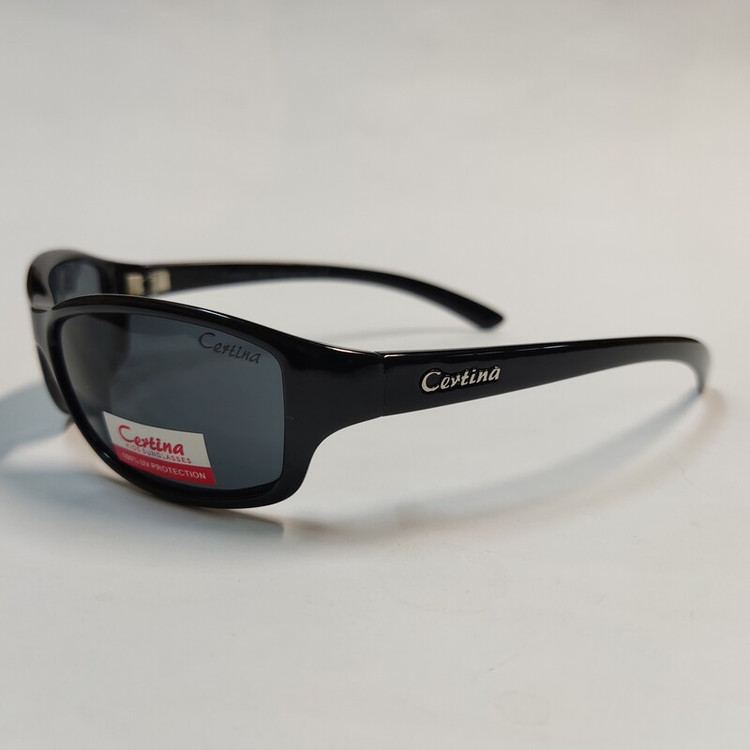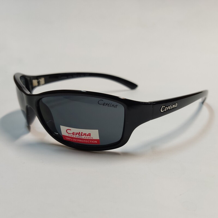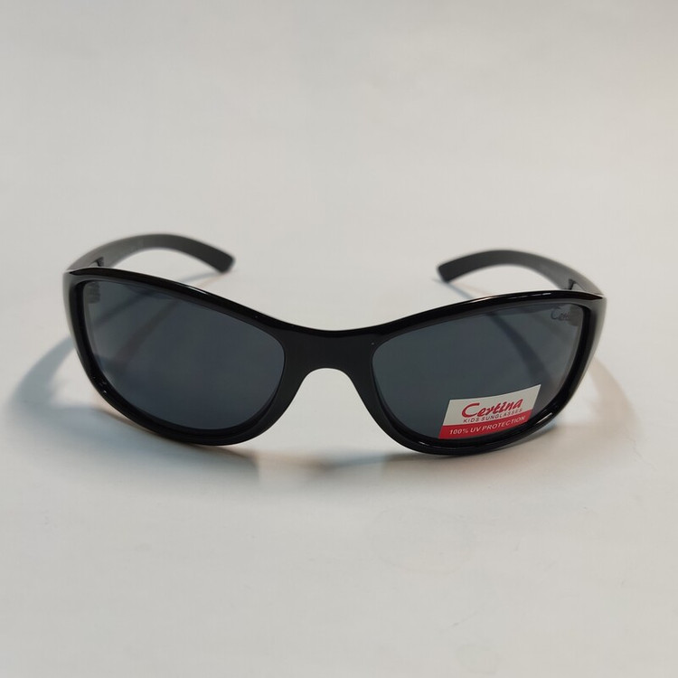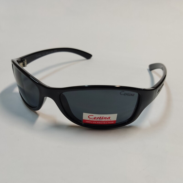 عینک آفتابی بچه گانه مارک سرتینا Certina با سایز 52*16*115 که قسمت جلوی فریم از دسته تا دسته در محدوده لولا حدود 126 و ارتفاع عدسی حدود 31 بوده و دسته ها دارای لولا فلزی و سایر مشخصات مطابق تصاویر است.