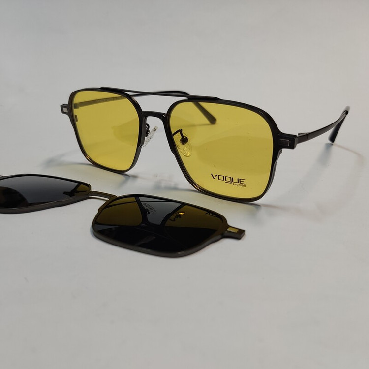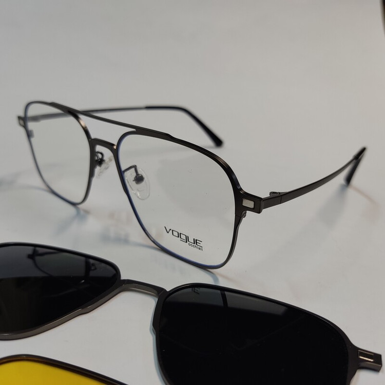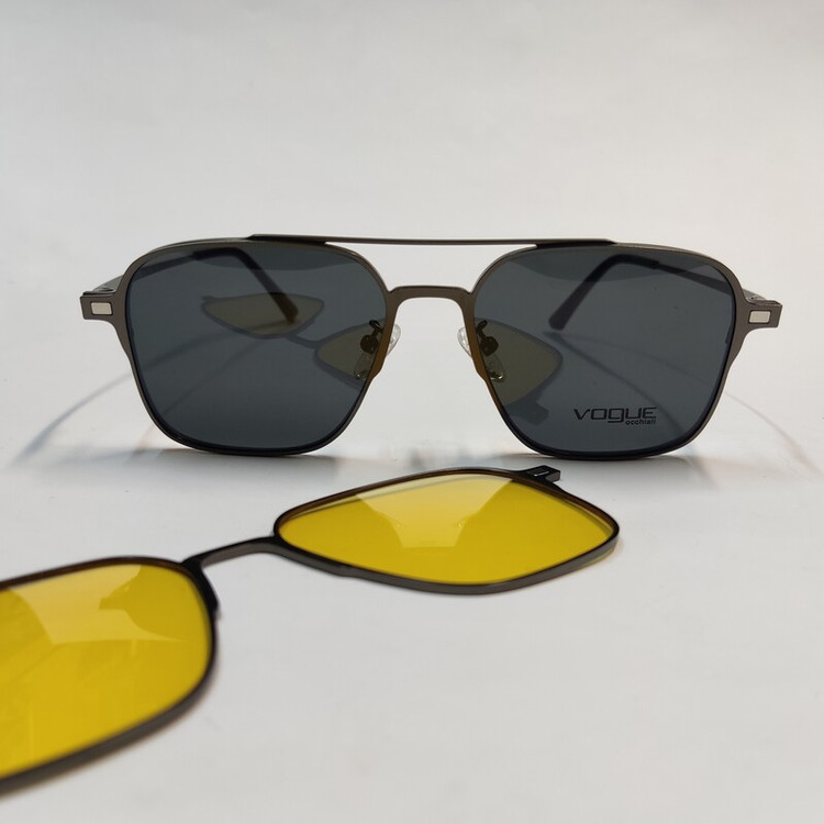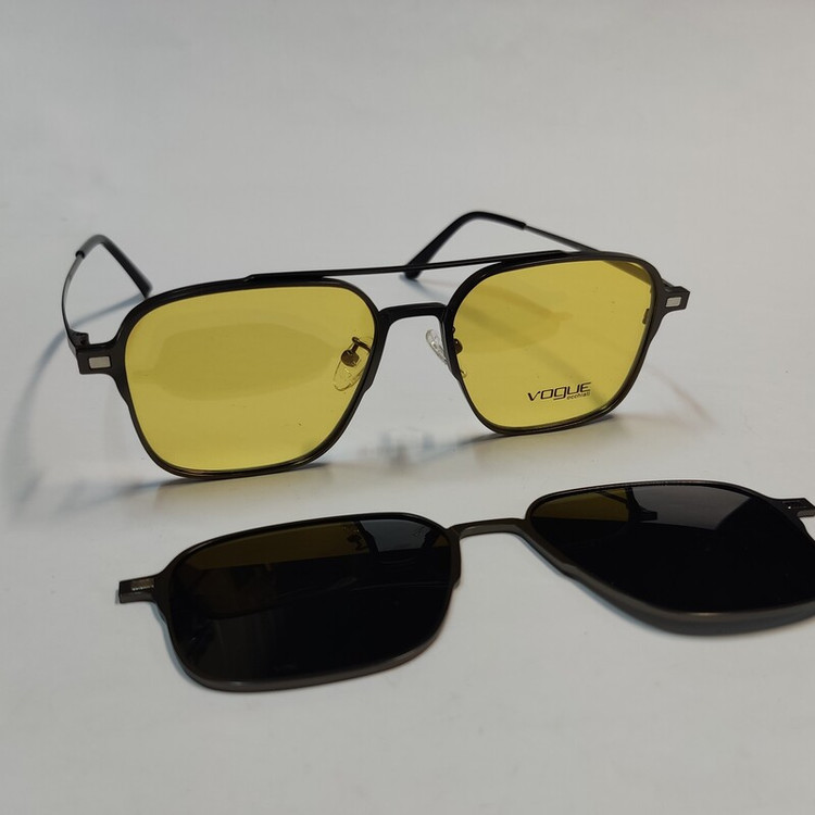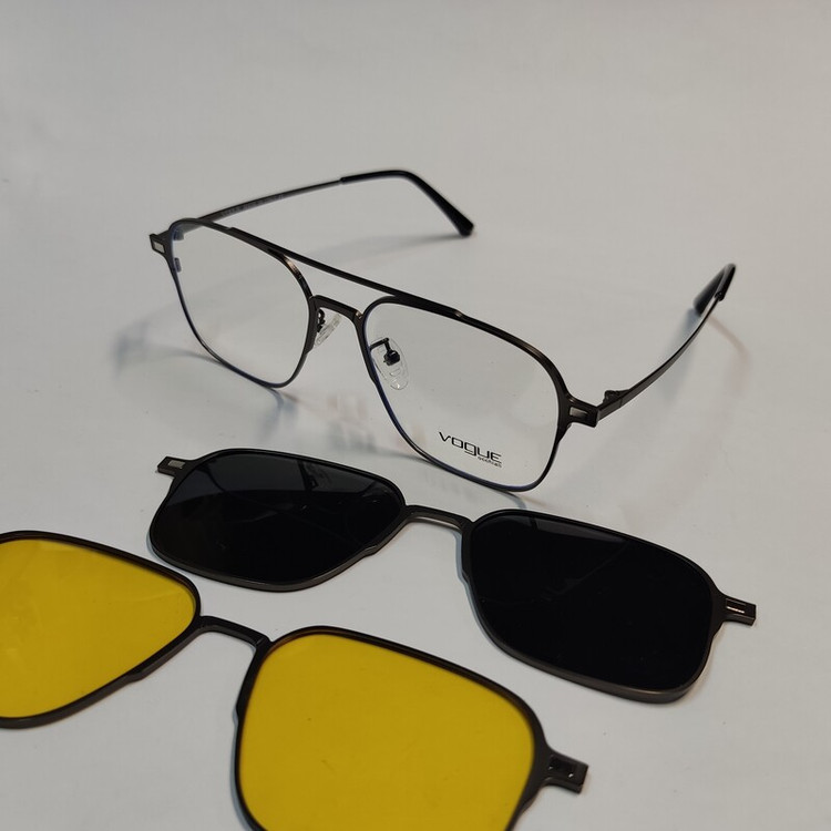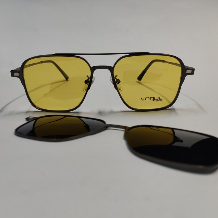 عینک کاوردار تیتانیوم Vogue به رنگ خاکستری دارای عدسی بلوکات بدون نمره بسیار باکیفیت و منعطف و شیک با سایز 54*18*140 که قسمت جلوی فریم از دسته تا دسته حدود 142 و ارتفاع عدسی حدود 45 می باشد.