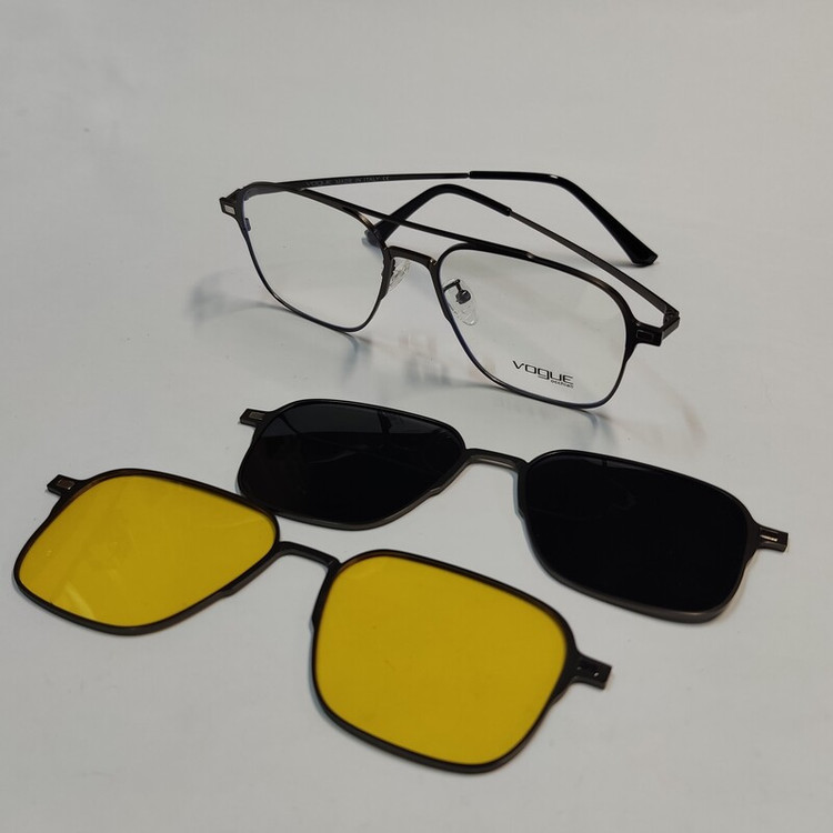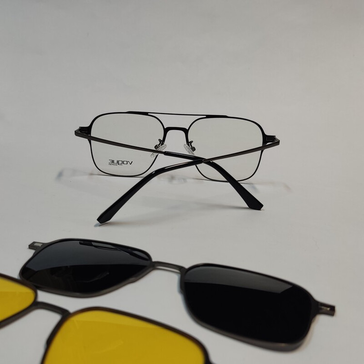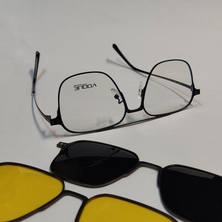 با قابلیت تعویض عدسی و استفاده به عنوان عینک طبی با دو کاور آفتابی و یا استفاده بدون تعویض عدسی به عنوان عینک آفتابی و عینک شب