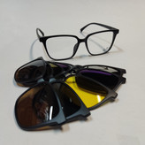 عینک کاوردار TR2382 با پنج کاور آفتابی مگنتی مشکی پلاریزه و قهوه ای و آبی رفلکس و نقره ای رفلکس و عینک شب مناسب استفاده مردانه و زنانه که با تعویض عدسی به عنوان عینک طبی با پنج کاور آفتابی و یا بدون تعویض عدسی به عنوان عینک آفتابی روزمره قابل استفاده میباشد. کاورها توسط مگنت و گیره در قسمت پل به راحتی روی فریم قرار می گیرند. سایز فریم 53*17*145 میباشد.