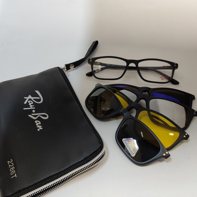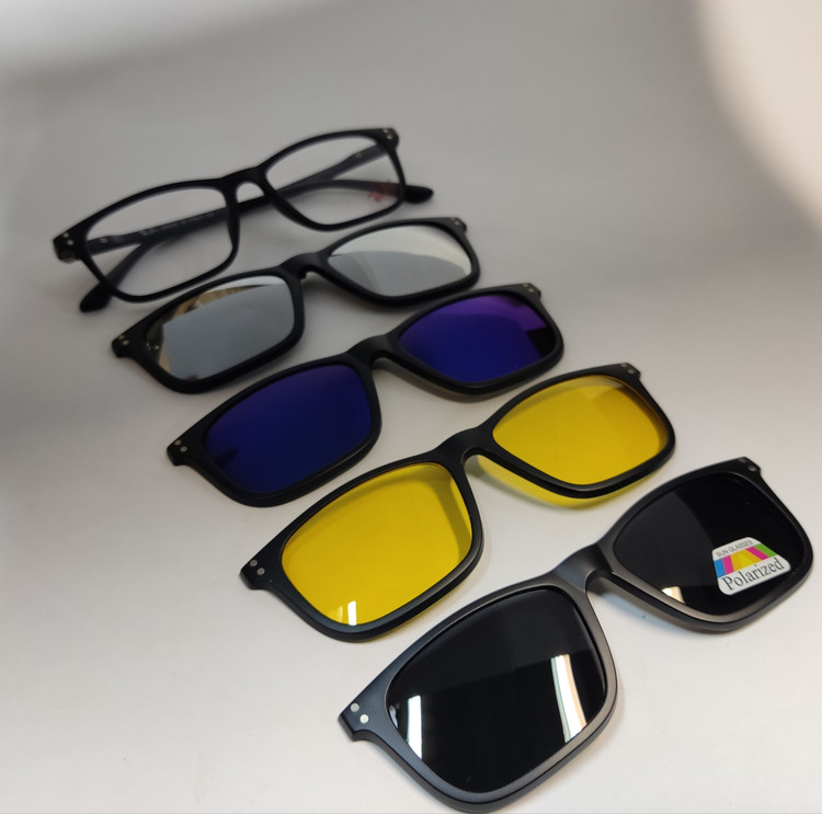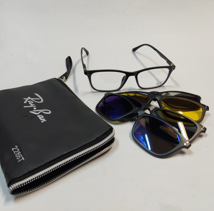 عینک کاوردار TR2286 با 4 کاور آفتابی مگنتی مشکی پلاریزه و آبی رفلکس و نقره ای رفلکس و عینک شب مناسب استفاده مردانه و زنانه که با تعویض عدسی به عنوان عینک طبی با 4 کاور آفتابی و یا بدون تعویض عدسی به عنوان عینک آفتابی روزمره قابل استفاده میباشد. کاورها توسط مگنت و گیره در قسمت پل به راحتی روی فریم قرار می گیرند. سایز فریم 53*18*141 میباشد.