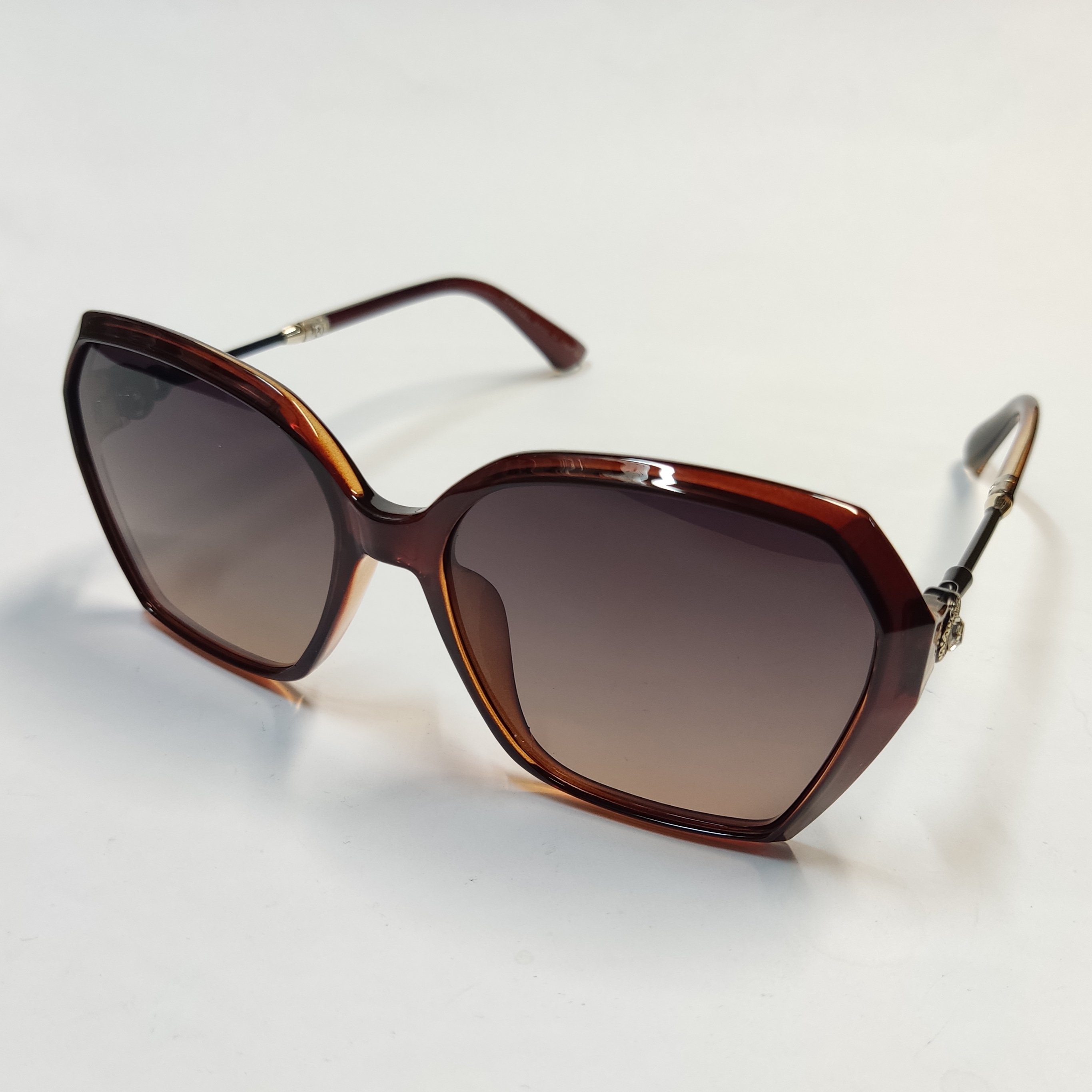عینک آفتابی زنانه قهوه ای با عدسی پلاریزه و سایز 60*18*146 با مشخصات مطابق تصاویر