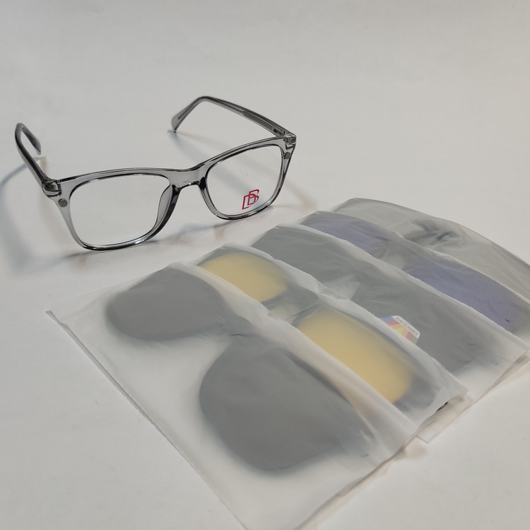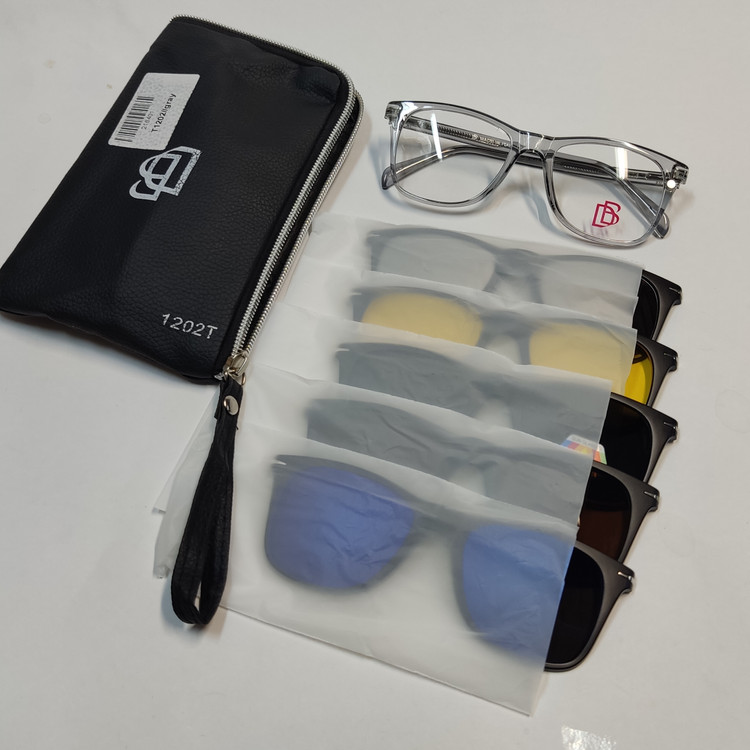 فریم عینک طبی کاور دار کد 1202 با 5 کاور آفتابی مشکی پلاریزه و قهوه ای و آبی رفلکس و نقره ای رفلکس و کاور مناسب شب مناسب استفاده زنانه و مردانه که با تعویض عدسی به عنوان عینک طبی با 5کاور آفتابی