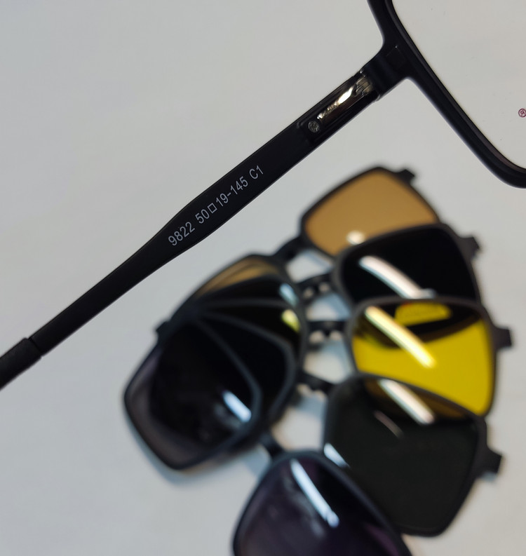 فریم عینک طبی کاوردار مگنتی با پنج کاور آفتابی مطابق تصاویر که کاور مشکی پلاریزه بوده سایز عینک 145*19*50 میباشد. دسته ها دارای لولا فنر و وزن عینک سبک است. مناسب استفاده زنانه و مردانه برای روزمره و رانندگی و شب و مد و زیبایی و.. است.