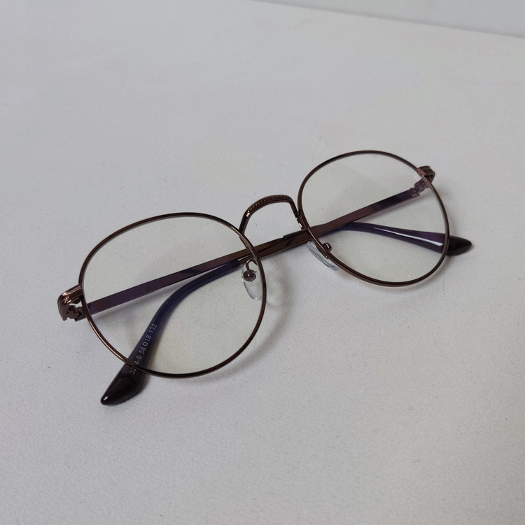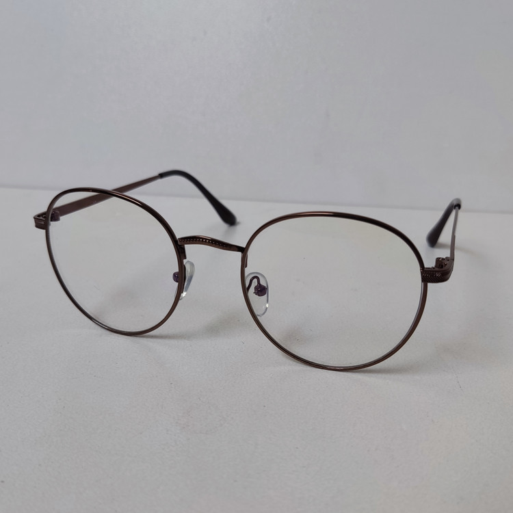 فریم عینک فلزی فشن قهوه ای با قابلیت تعویض عدسی و استفاده به عنوان عینک طبی و یا بدون تعویض عدسی برای مد و زیبایی.. با سایز (نوشته روی دسته 132*18*56) و سایز صحیح 135*18*50 مناسب استفاده زنانه و مردانه