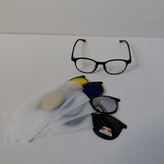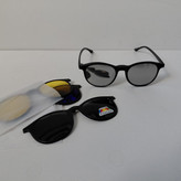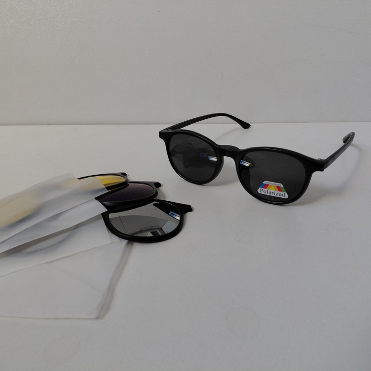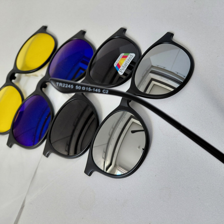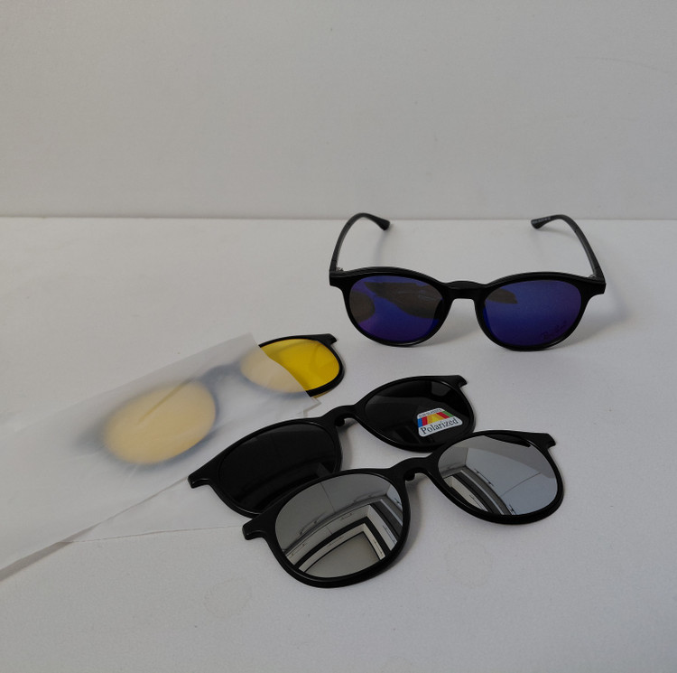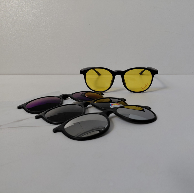 فریم عینک طبی کاور دار با 4 کاور آفتابی که 1.کاور دودی پلاریزه بوده 2.کاور شب مناسب استفاده شب 3. کاور آبی رفلکس 4.کاور نقره ای رفلکس مناسب روزهای آفتابی و برفی