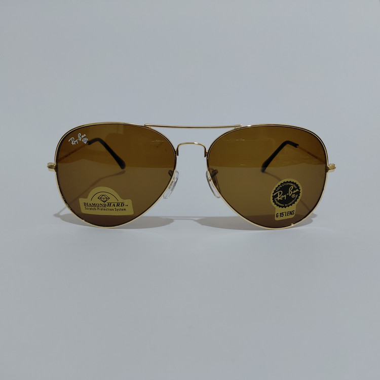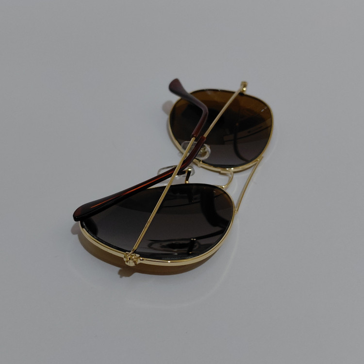 عینک آفتابی ری بن RAY BAN سری RB 3026 با فریم طلایی و عدسی شیشه قهوه ای مطابق تصاویر با کیفیت بالا..