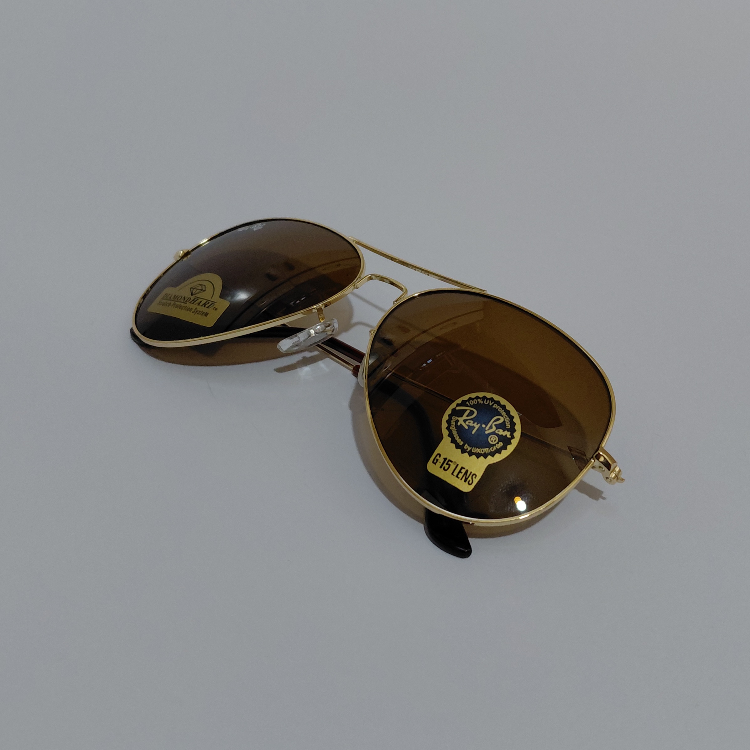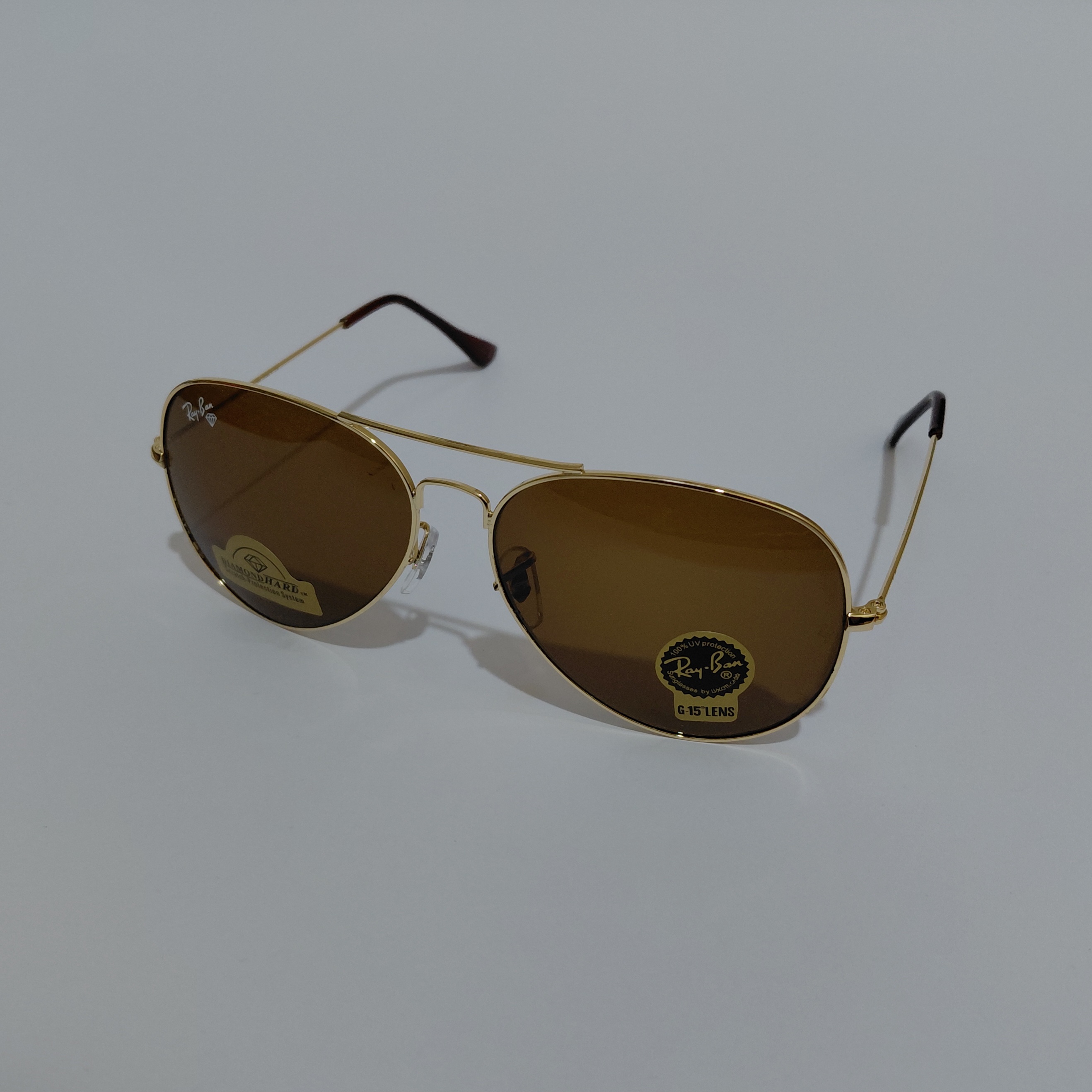 عینک آفتابی ری بن RAY BAN سری RB 3026 با فریم طلایی و عدسی شیشه قهوه ای مطابق تصاویر با کیفیت بالا..