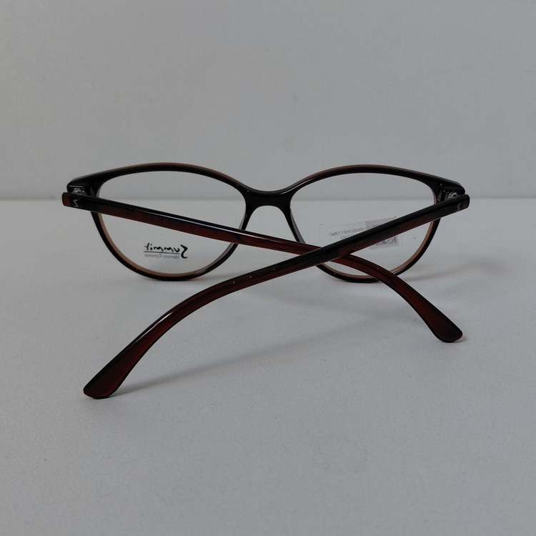 فریم عینک طبی زنانه مدل گربه ای مارک Summit ترکیه با مشخصات مطابق تصاویر به رنگ قهوه ای و سایز 135*18*51 که طول دسته تا جلوی فریم 140 و قسمت جلوی فریم از دسته تا دسته حدود 138 و ارتفاع عدسی حدود 40 میلیمتر بوده و دسته ها دارای لولا فلزی ساده است.