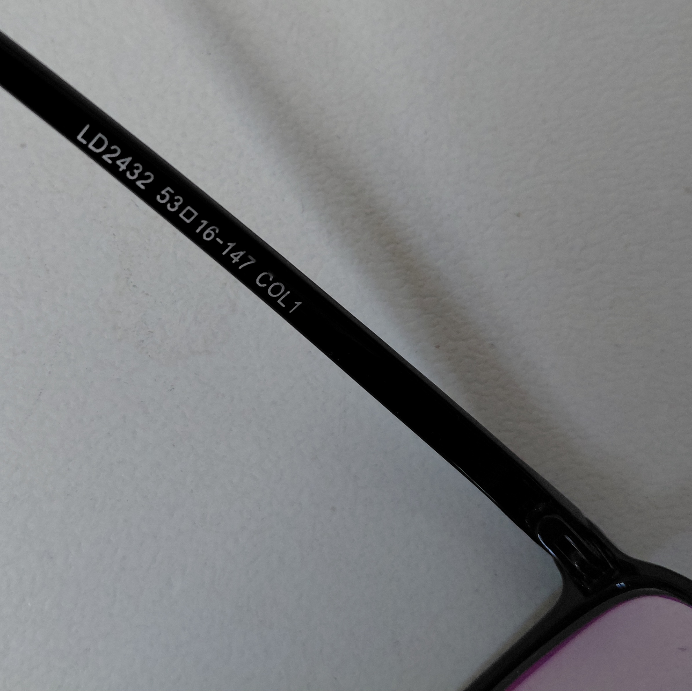 فریم عینک طبی LD2432 با سایز 147*16*53 (طول دسته 140 ) که قسمت جلوی فریم از دسته تا دسته 135 و ارتفاع عدسی 40 بوده و دسته ها دارای لولا ساده فلزی است.