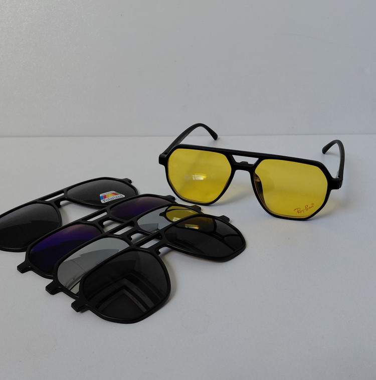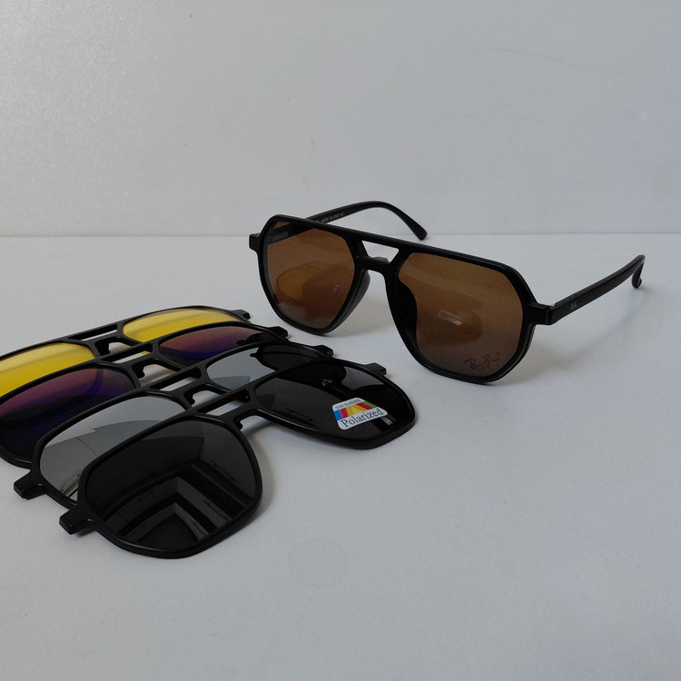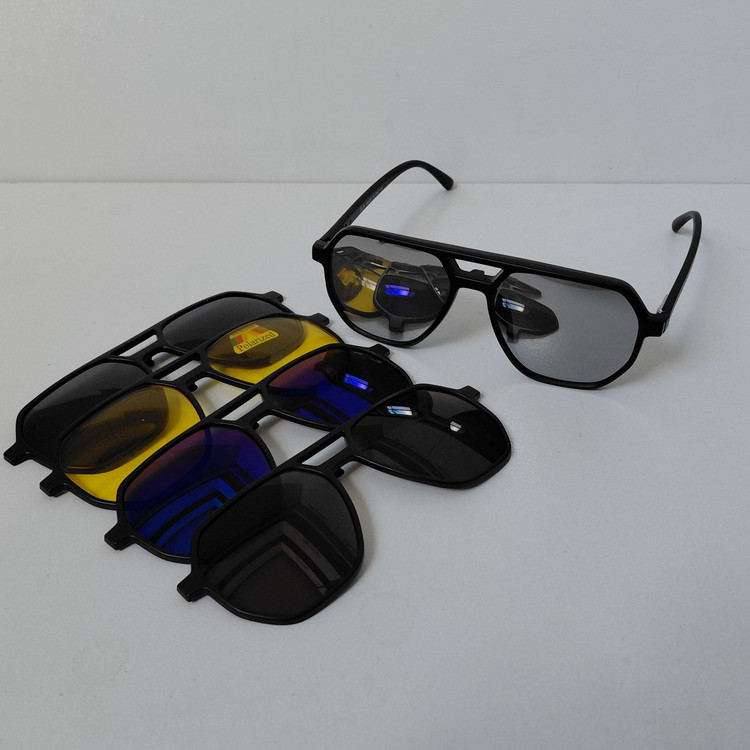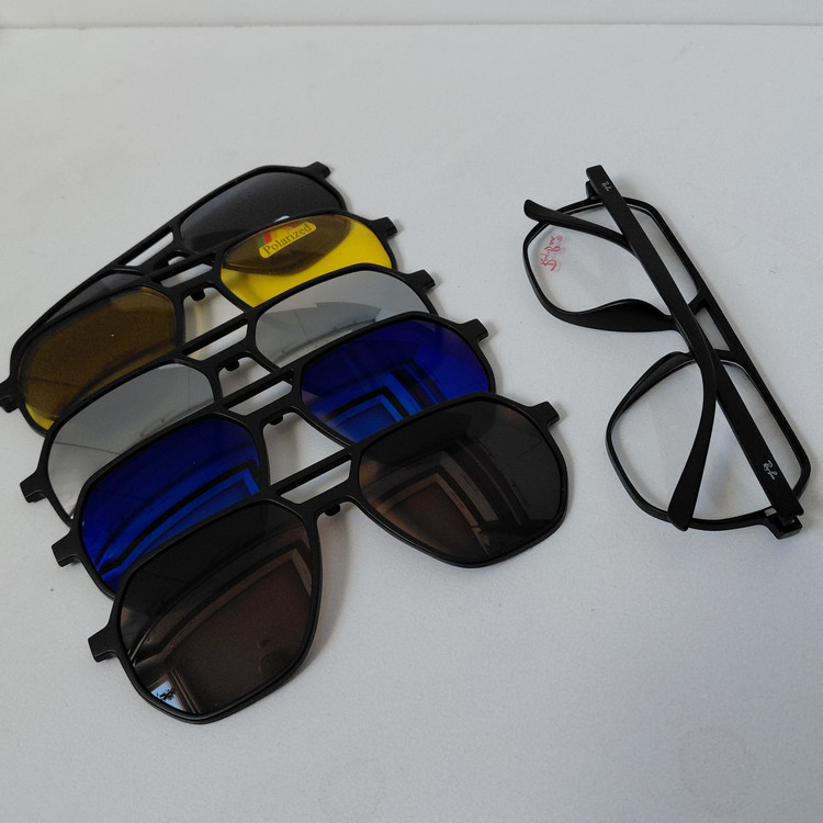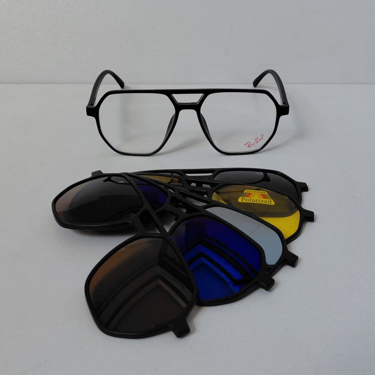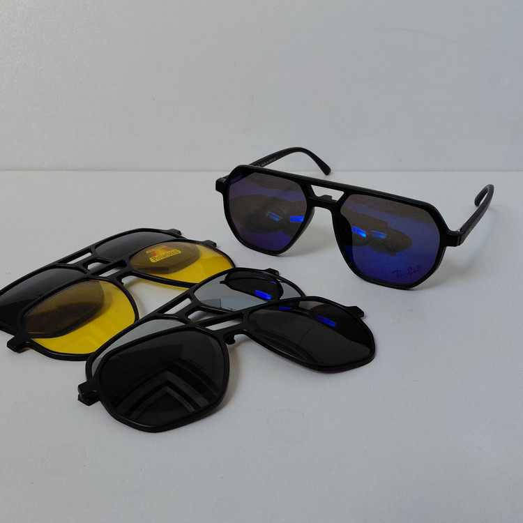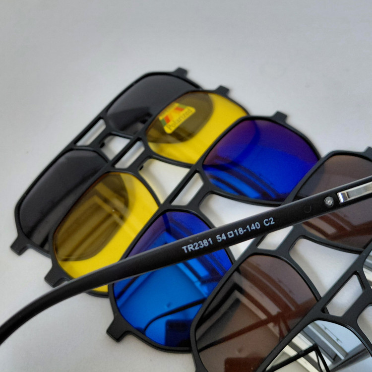 فریم عینک کاوردار TR2381 با پنج کاور آفتابی مشکی پلاریزه و زرد شب و آبی رفلکس و نقره ای رفلکس و قهوه ای، مناسب عینک طبی و مطالعه و روزمره و رانندگی و روزهای آفتابی و برفی... مناسب استفاده زنانه و مردانه..