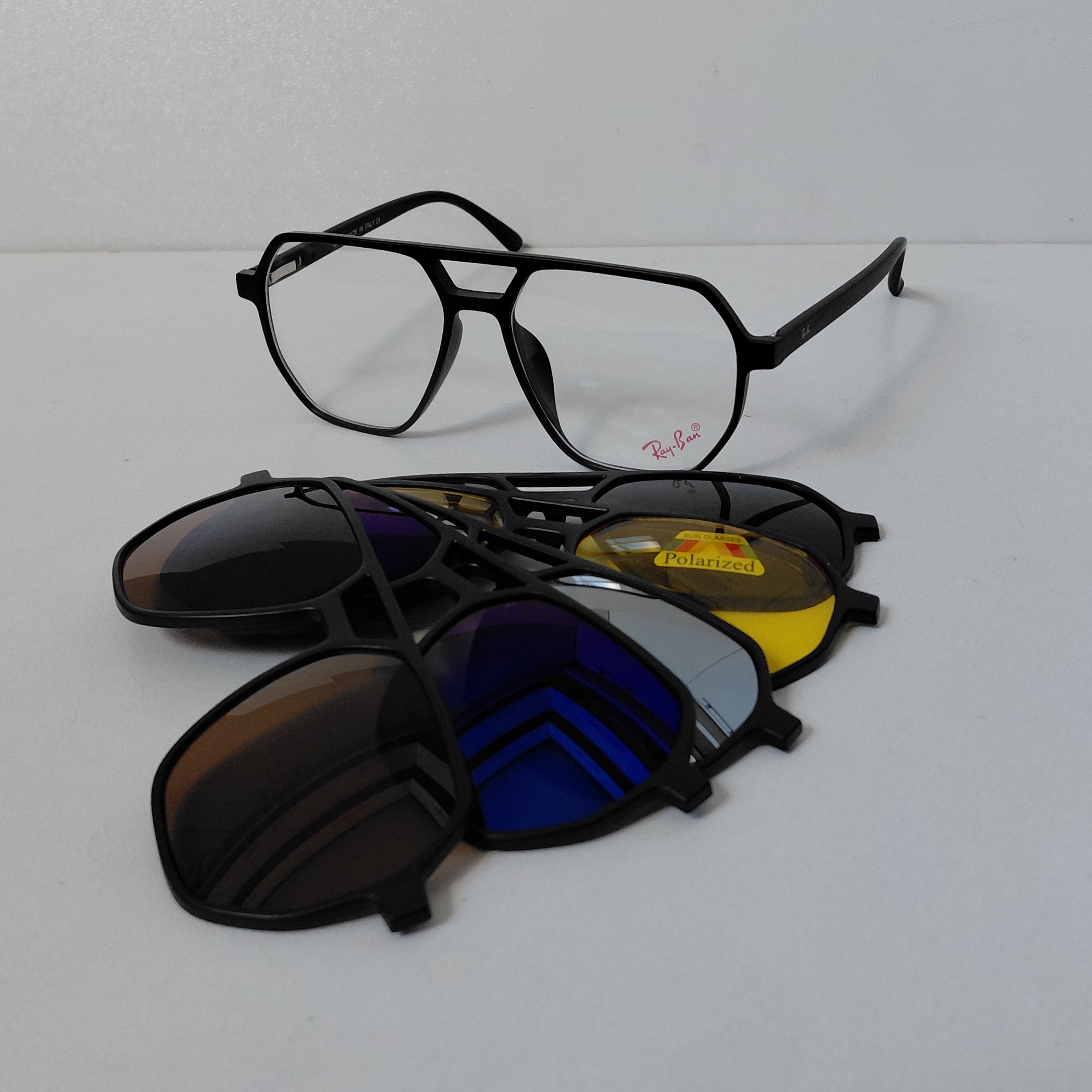 فریم عینک کاوردار TR2381 با پنج کاور آفتابی مشکی پلاریزه و زرد شب و آبی رفلکس و نقره ای رفلکس و قهوه ای، مناسب عینک طبی و مطالعه و روزمره و رانندگی و روزهای آفتابی و برفی... مناسب استفاده زنانه و مردانه..