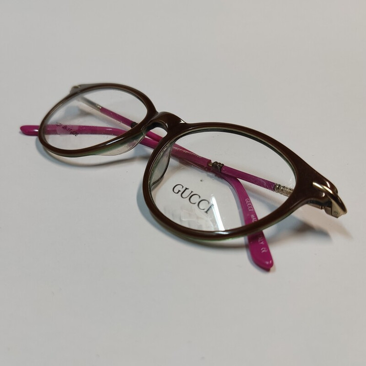 فریم عینک طبی زنانه گوچی با دسته لولا فنر که فریم از بیرون قهوه ای و از داخل زیتونی و دسته ها صورتی است و سایز فریم 48*17*138 میباشد و سایر مشخصات مطابق تصاویر و ویدیو است.