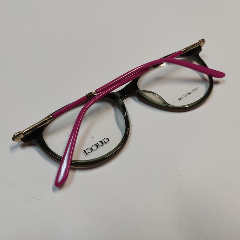 فریم عینک طبی زنانه گوچی با دسته لولا فنر که فریم از بیرون قهوه ای و از داخل زیتونی و دسته ها صورتی است و سایز فریم 48*17*138 میباشد و سایر مشخصات مطابق تصاویر و ویدیو است.