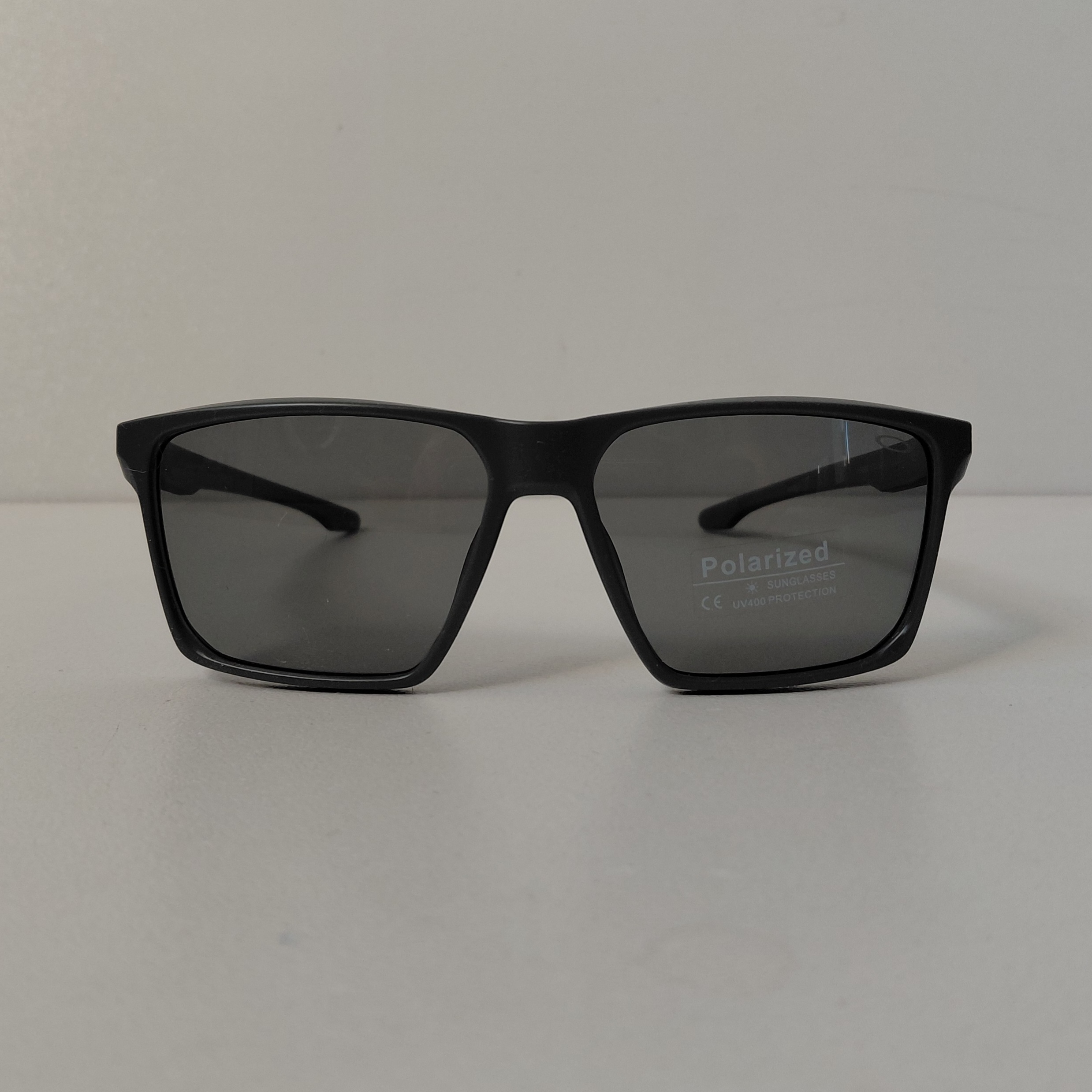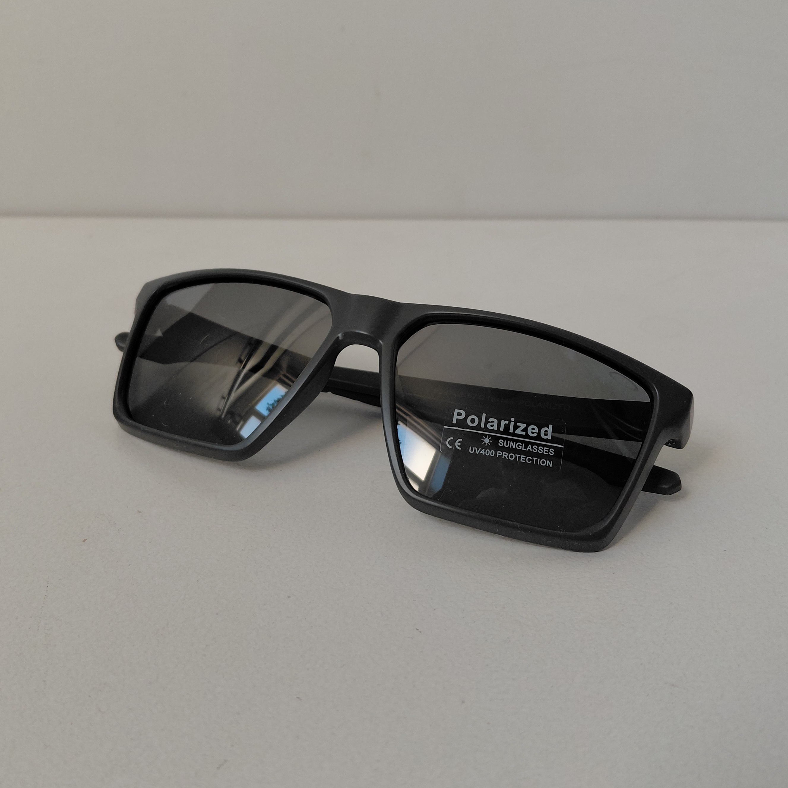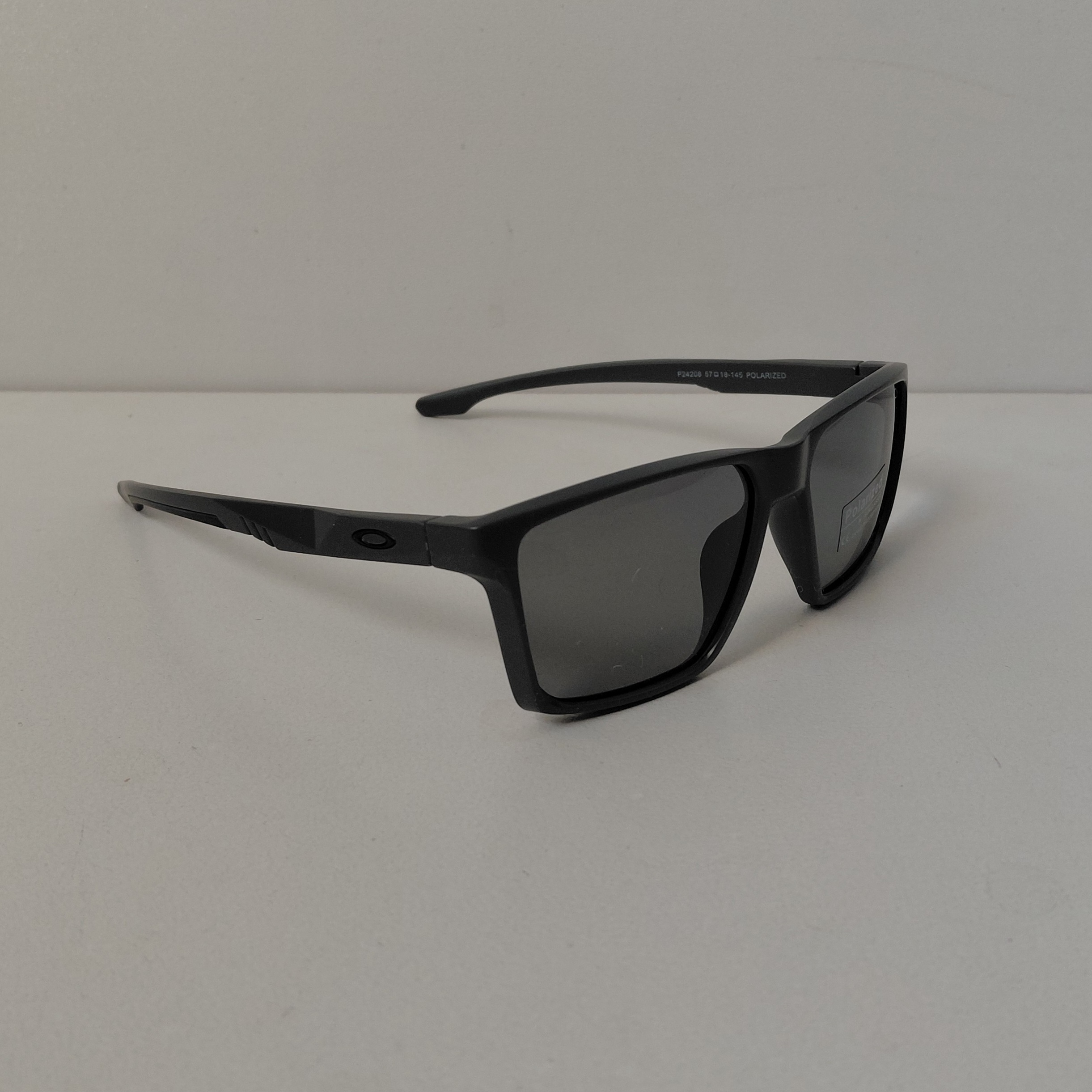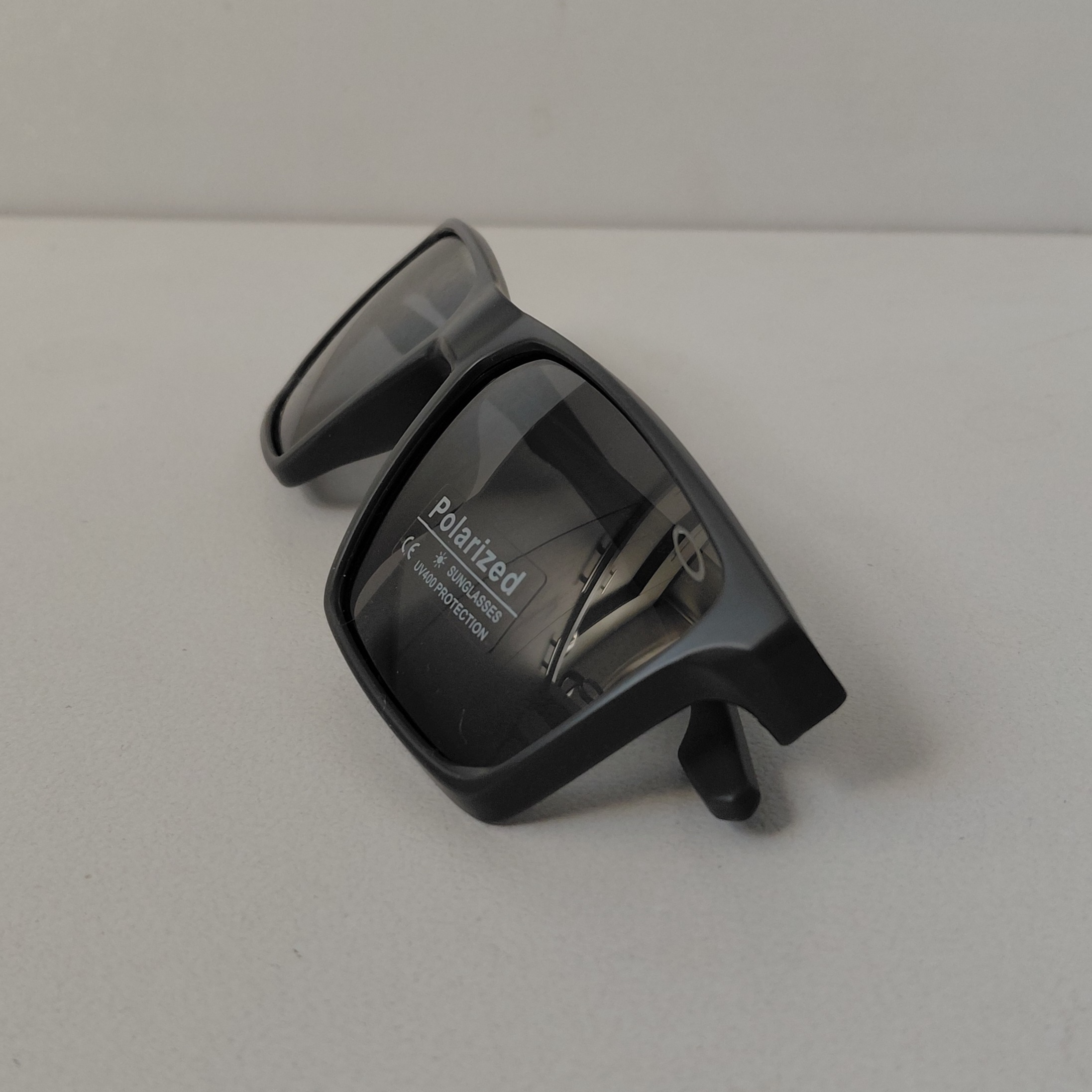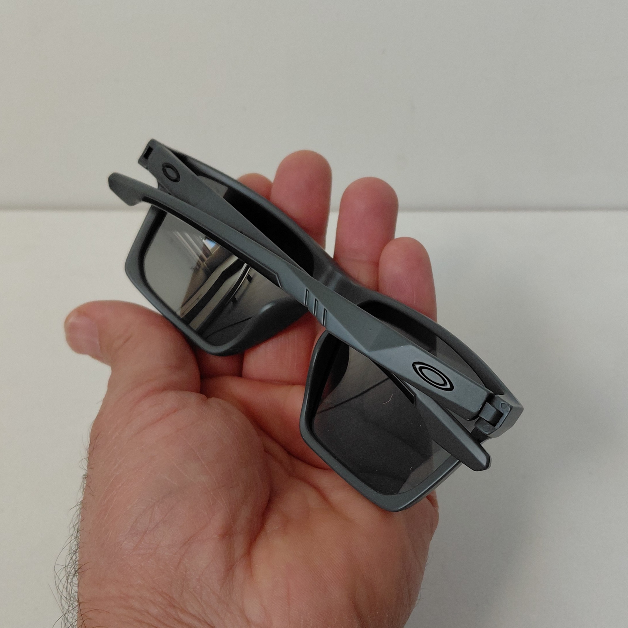 عینک آفتابی ورزشی اوکلی با فریم طوسی و عدسی پلاریزه و سایز 145*17*56 که قسمت جلوی عینک از دسته تا دسته حدود 140 و ارتفاع عدسی حدود 41 میباشد.