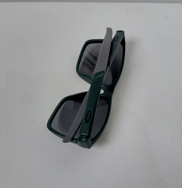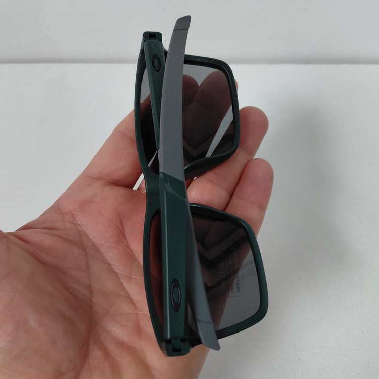 عینک آفتابی ورزشی اوکلی با فریم سبز یشمی و عدسی پلاریزه و سایز 145*17*56 که قسمت جلوی عینک از دسته تا دسته حدود 140 و ارتفاع عدسی حدود 42 میباشد.