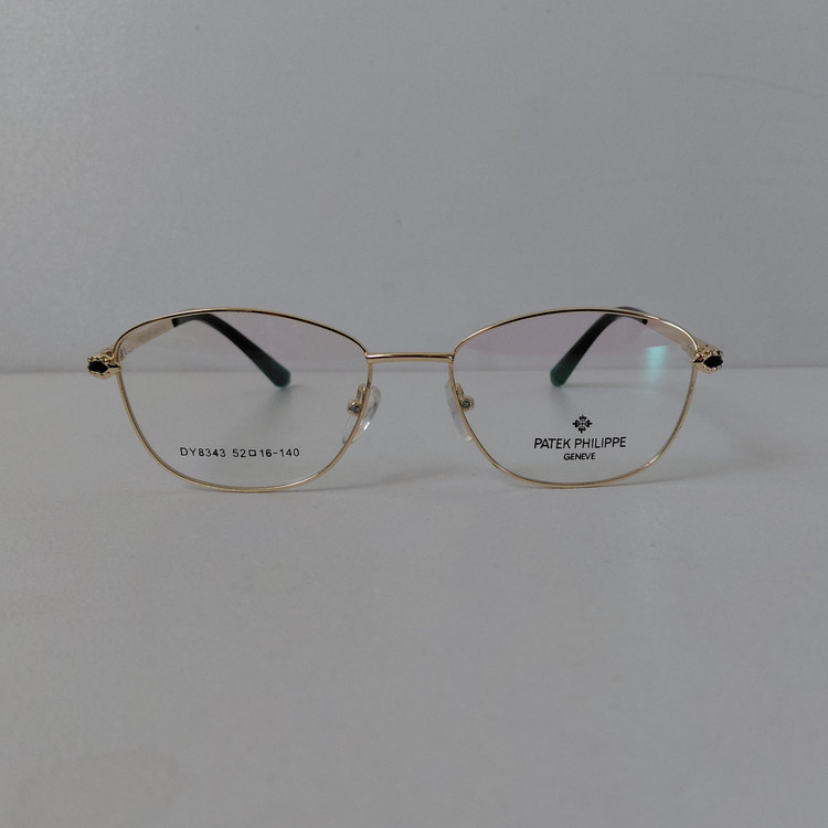 فریم عینک طبی زنانه مارک PATEK PHILIPPE با سایز 140*16*52 که قسمت جلوی فریم از دسته تا دسته حدود ۱۳۳ میلیمتر و ارتفاع عدسی حدود ۳۷ بوده با دسته های لولا فنر با مشخصات مطابق تصاویر..