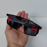 با مشخصات مطابق تصاویر که قسمت جلوی عینک از دسته تا دسته در محدوده لولا 148 میلیمتر و ارتفاع عدسی در بزرگترین قسمت حدود 57 میلیمتر و اندازه دسته تا لولا حدود 130 و تا عدسی حدود 142 میباشد.