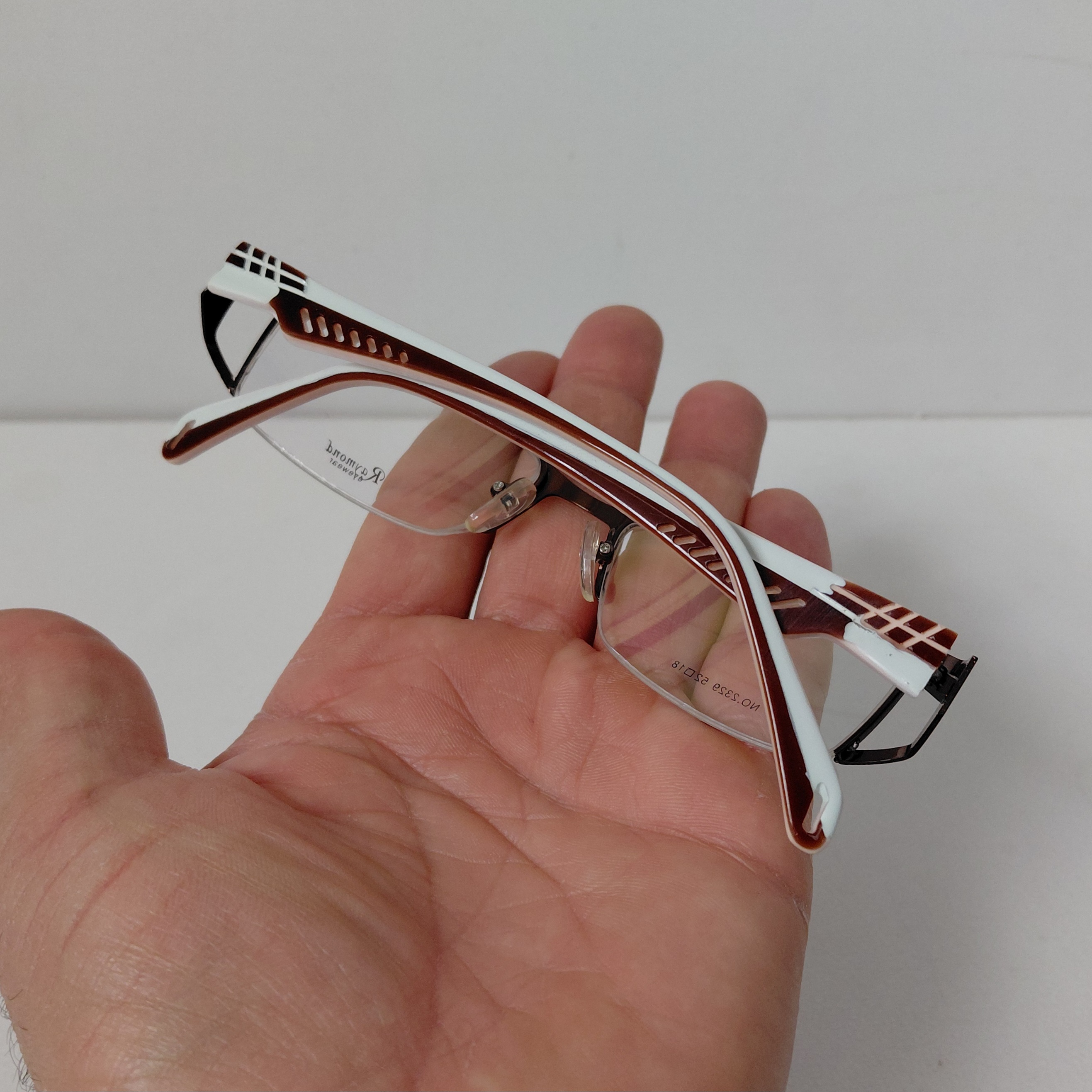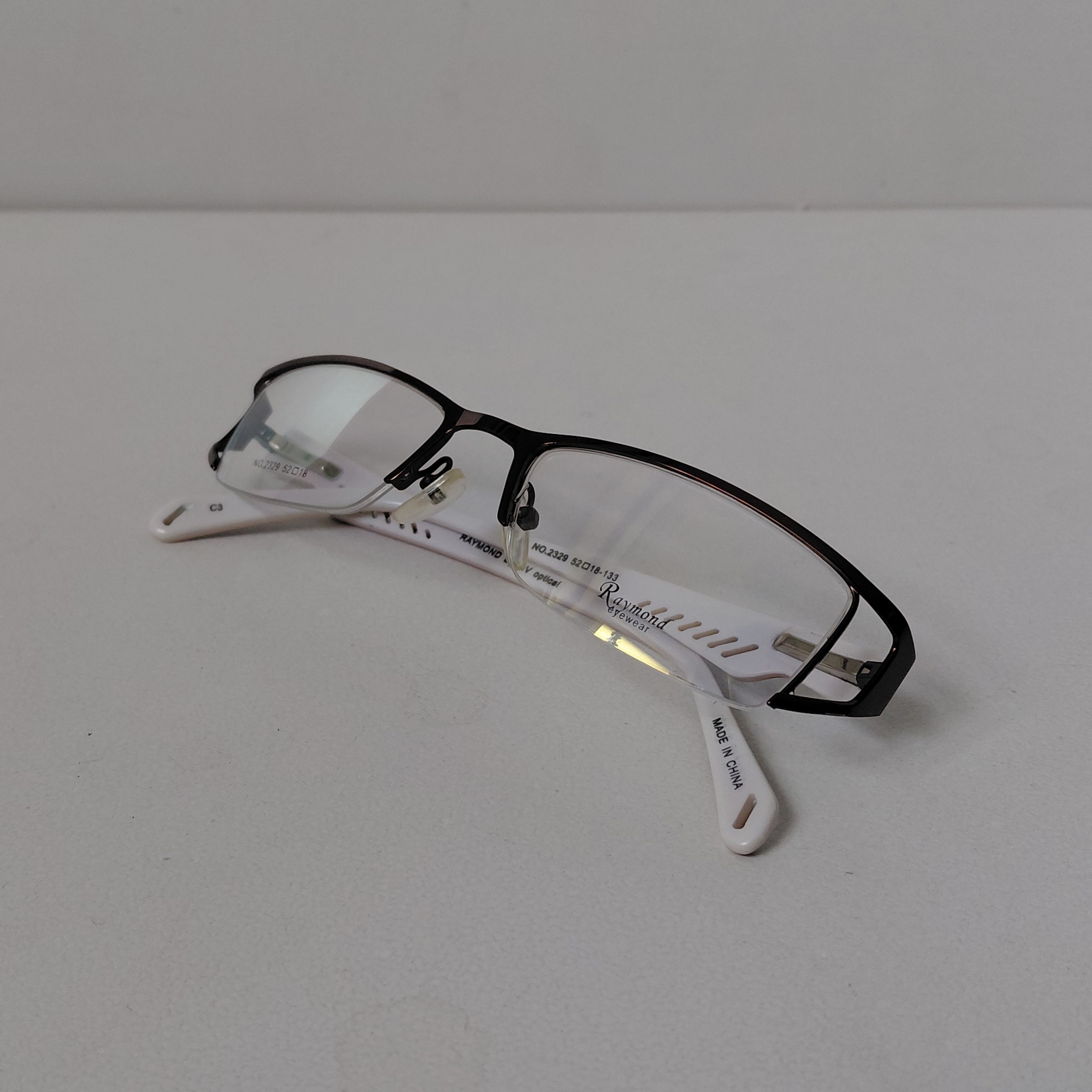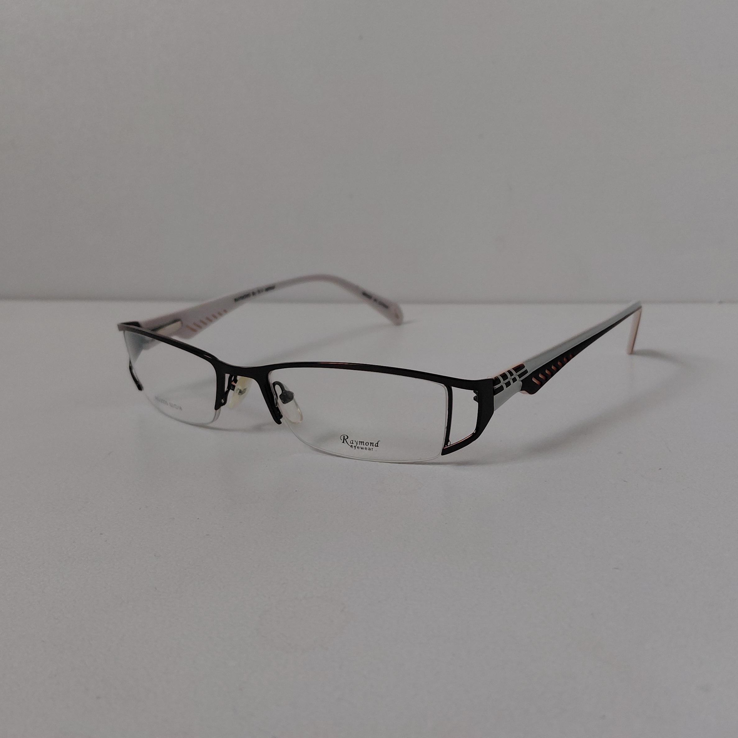 فریم عینک طبی زنانه ریموند مدل نیم فریم با مشخصات مطابق تصاویر و سایز 133*18*52 که قسمت جلوی فریم از دسته تا دسته حدود 135 میلیمتر و ارتفاع عدسی حدود 27 میباشد.