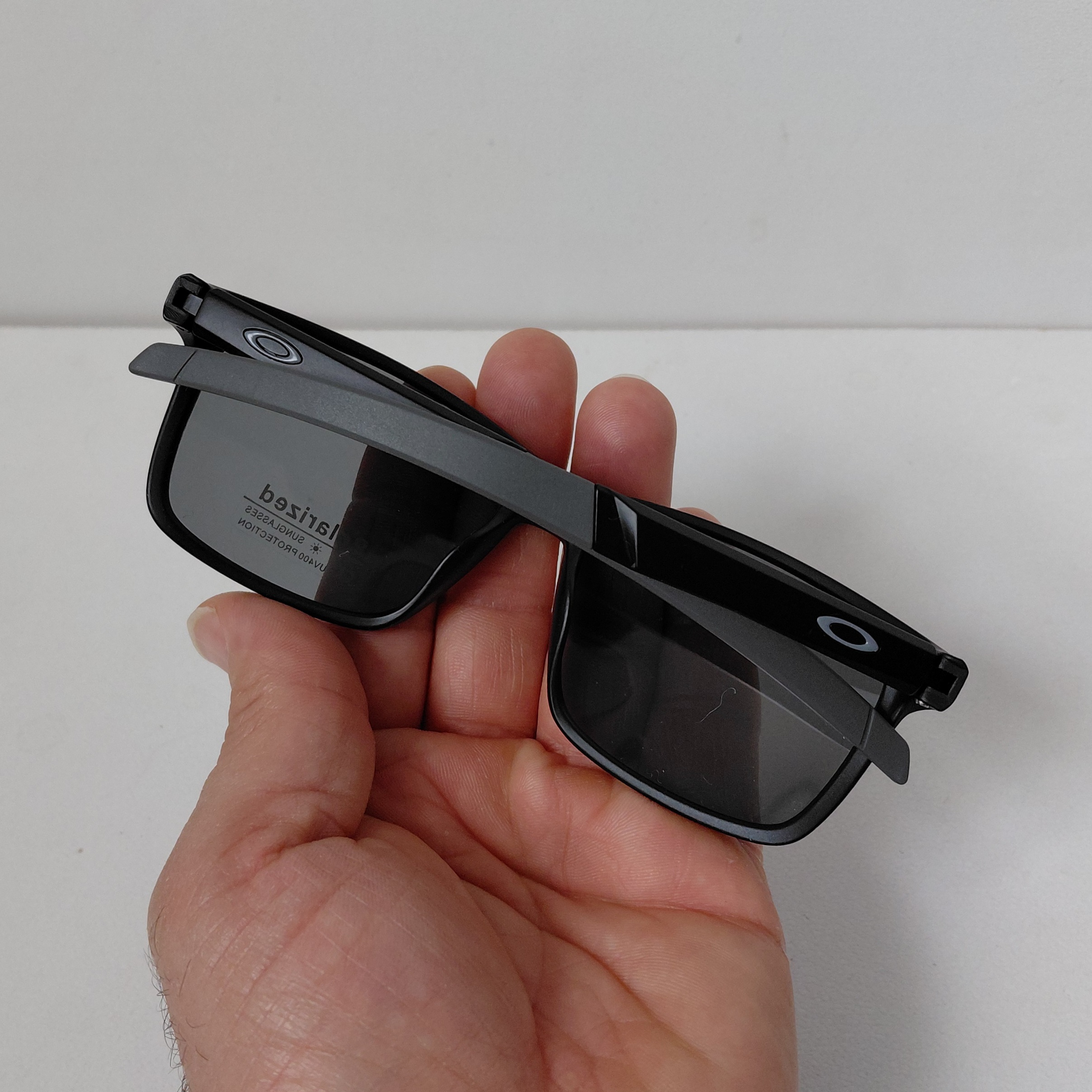 عینک آفتابی اوکلی مشکی با عدسی پلاریزه با سایز 145*15*56 که قسمت جلوی عینک از دسته تا دسته حدود 138 میلیمتر و ارتفاع عدسی حدود 42 میباشد.