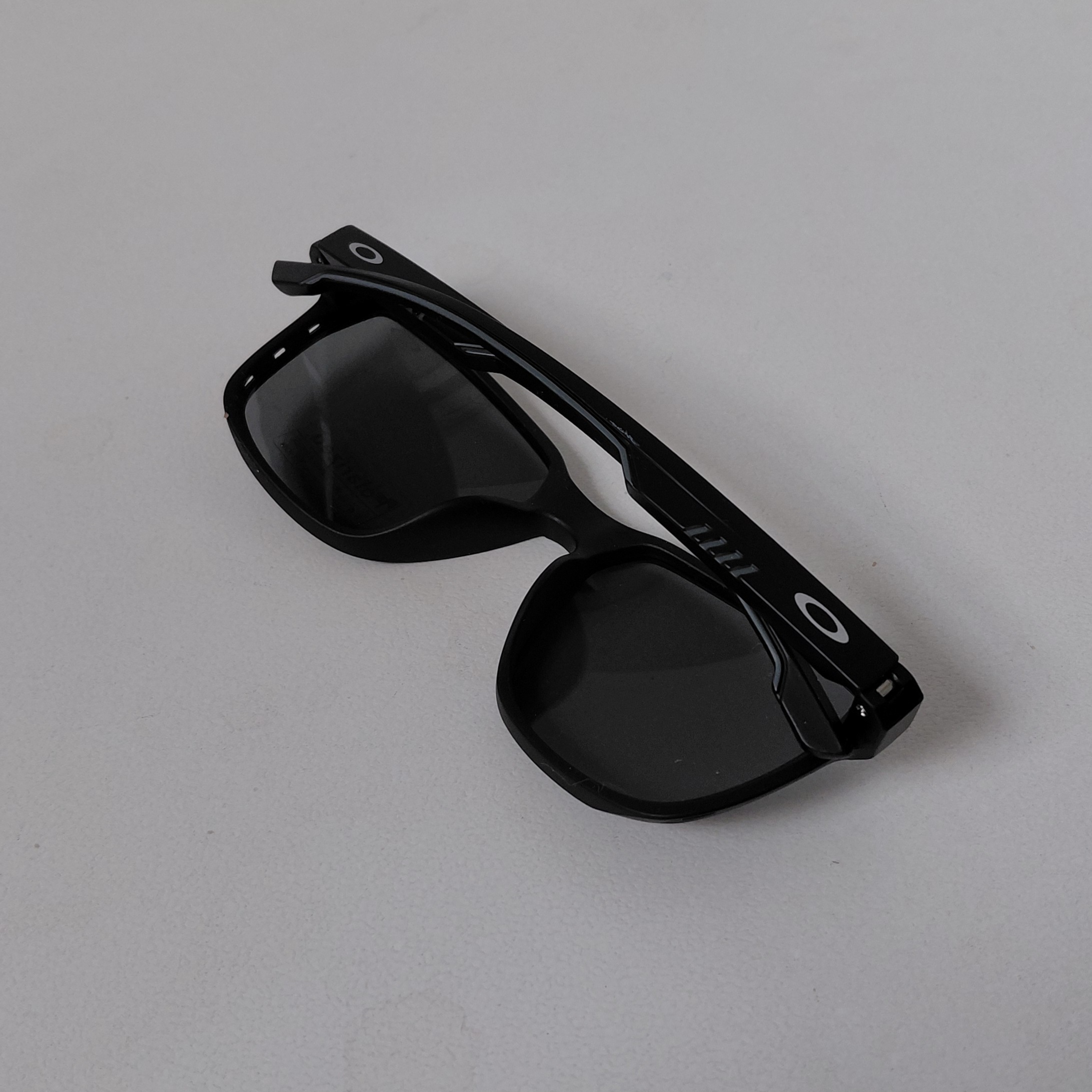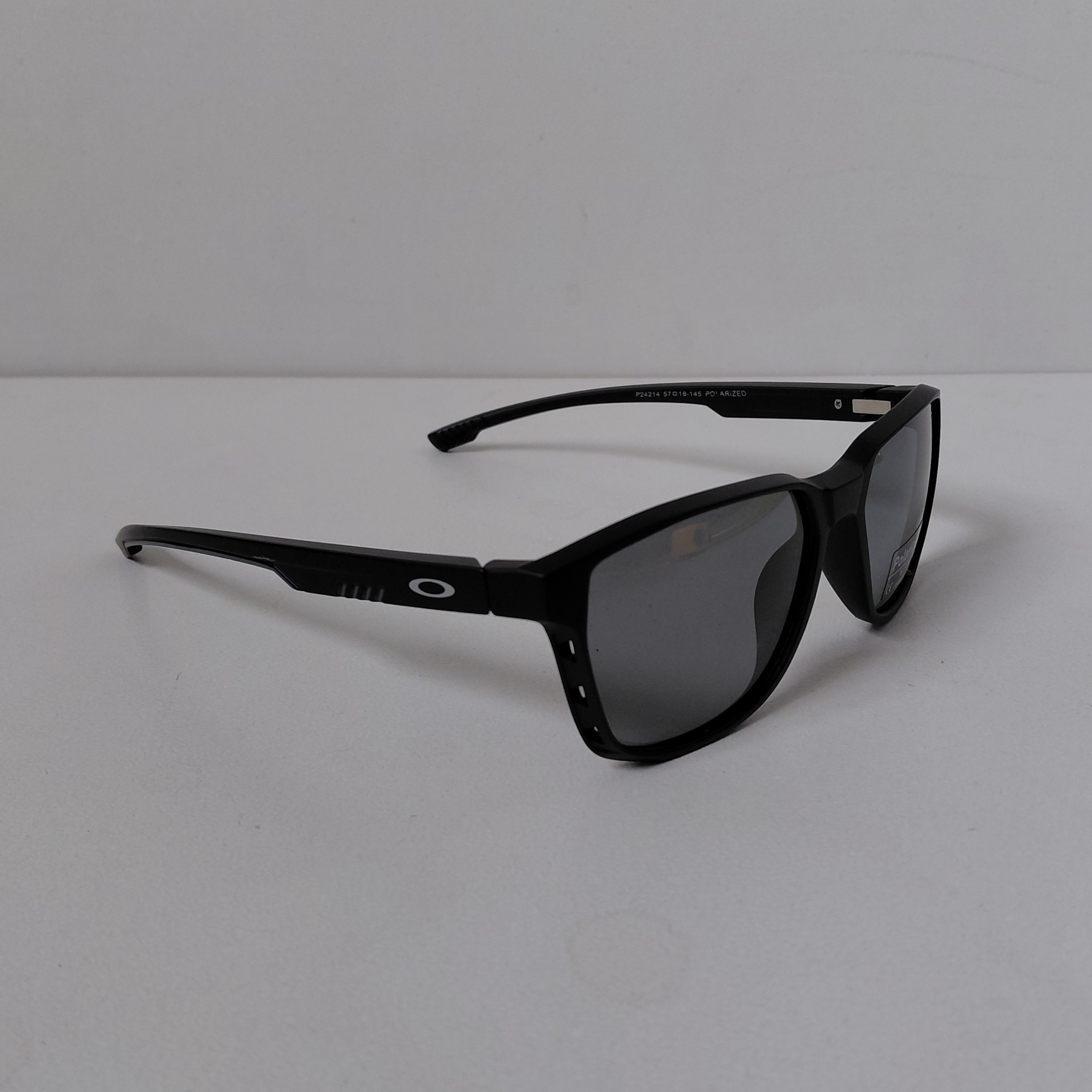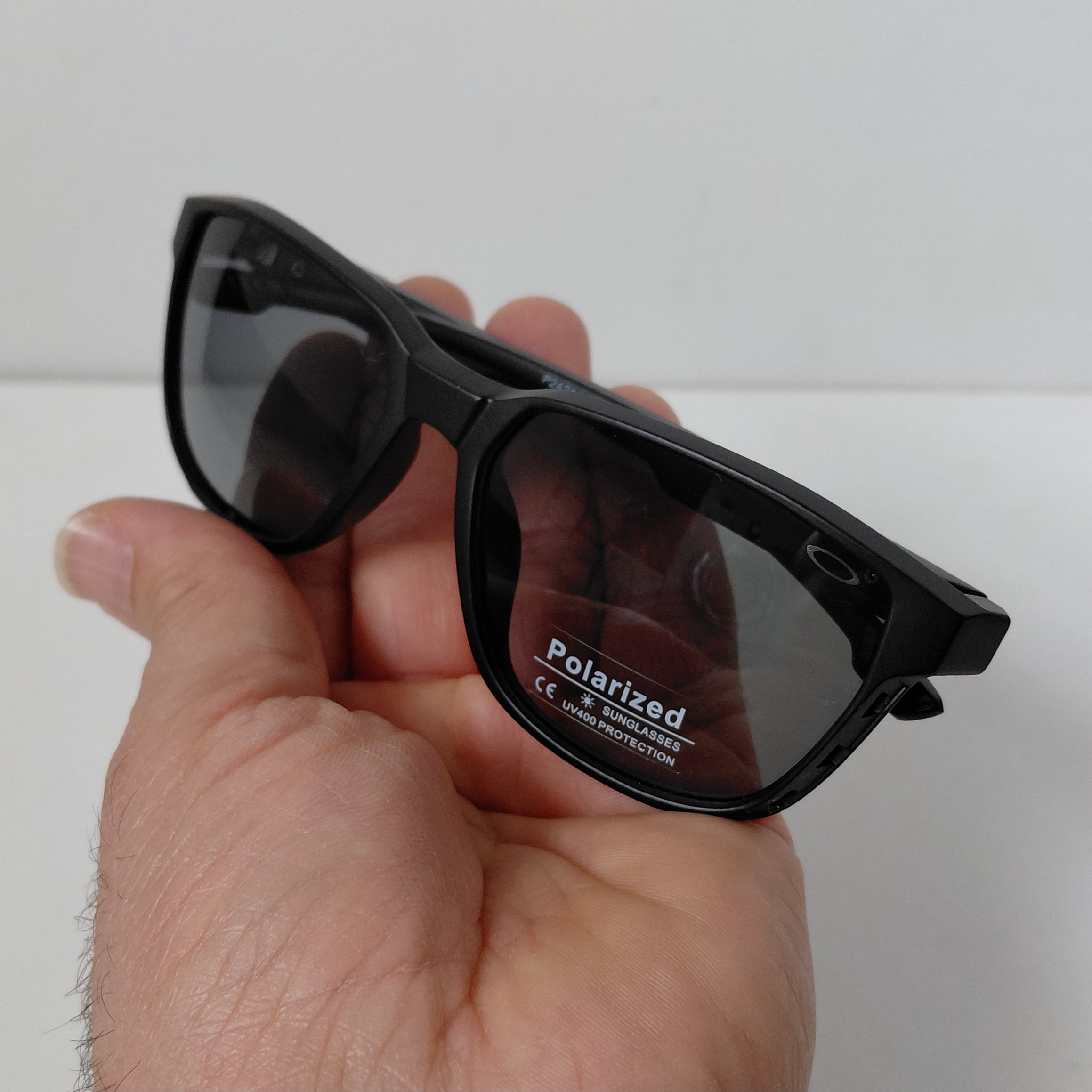 عینک آفتابی اوکلی مشکی با عدسی پلاریزه با سایز 145*18*57 که قسمت جلوی عینک از دسته تا دسته حدود 142 میلیمتر و ارتفاع عدسی حدود 42 میباشد.