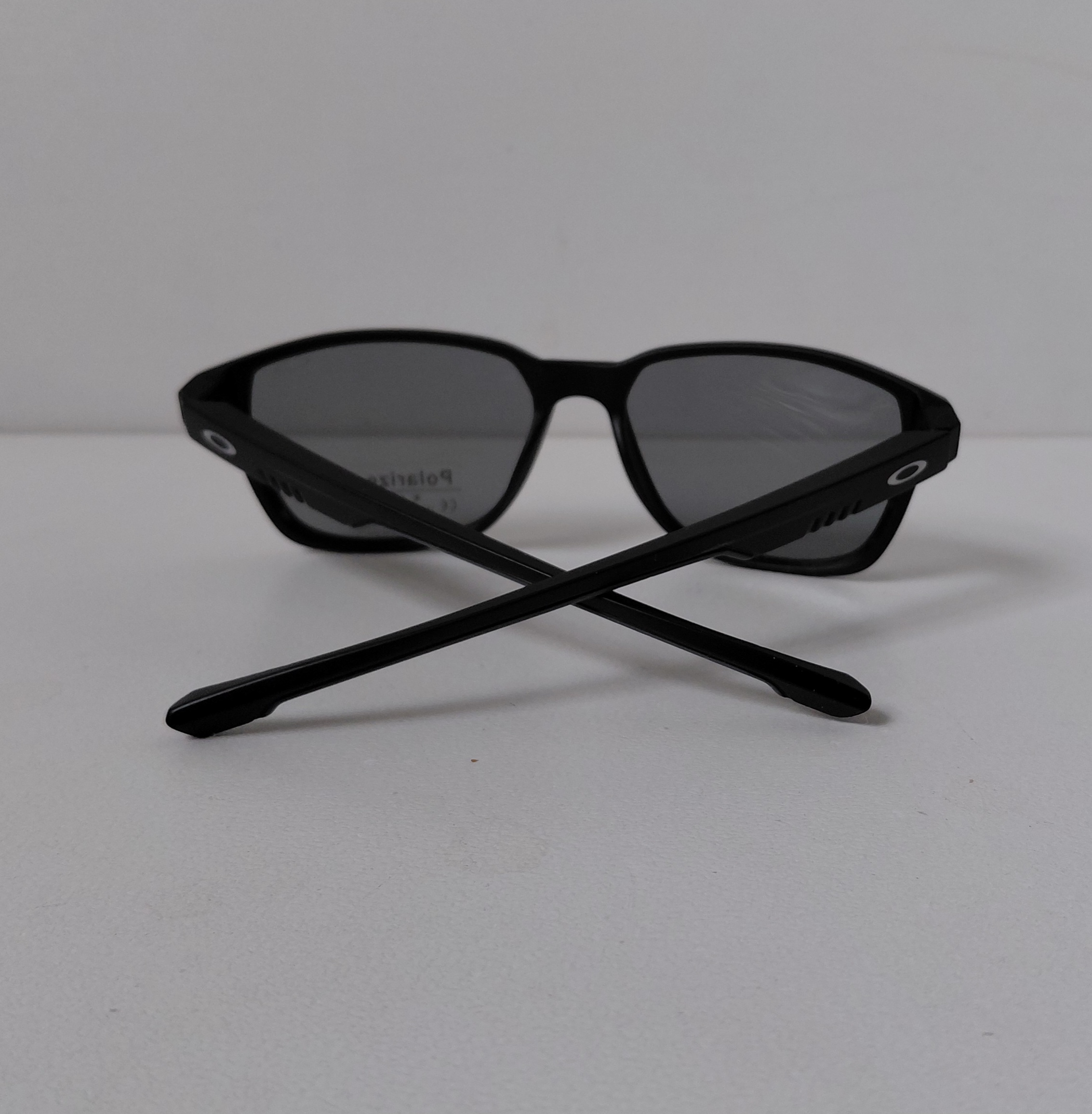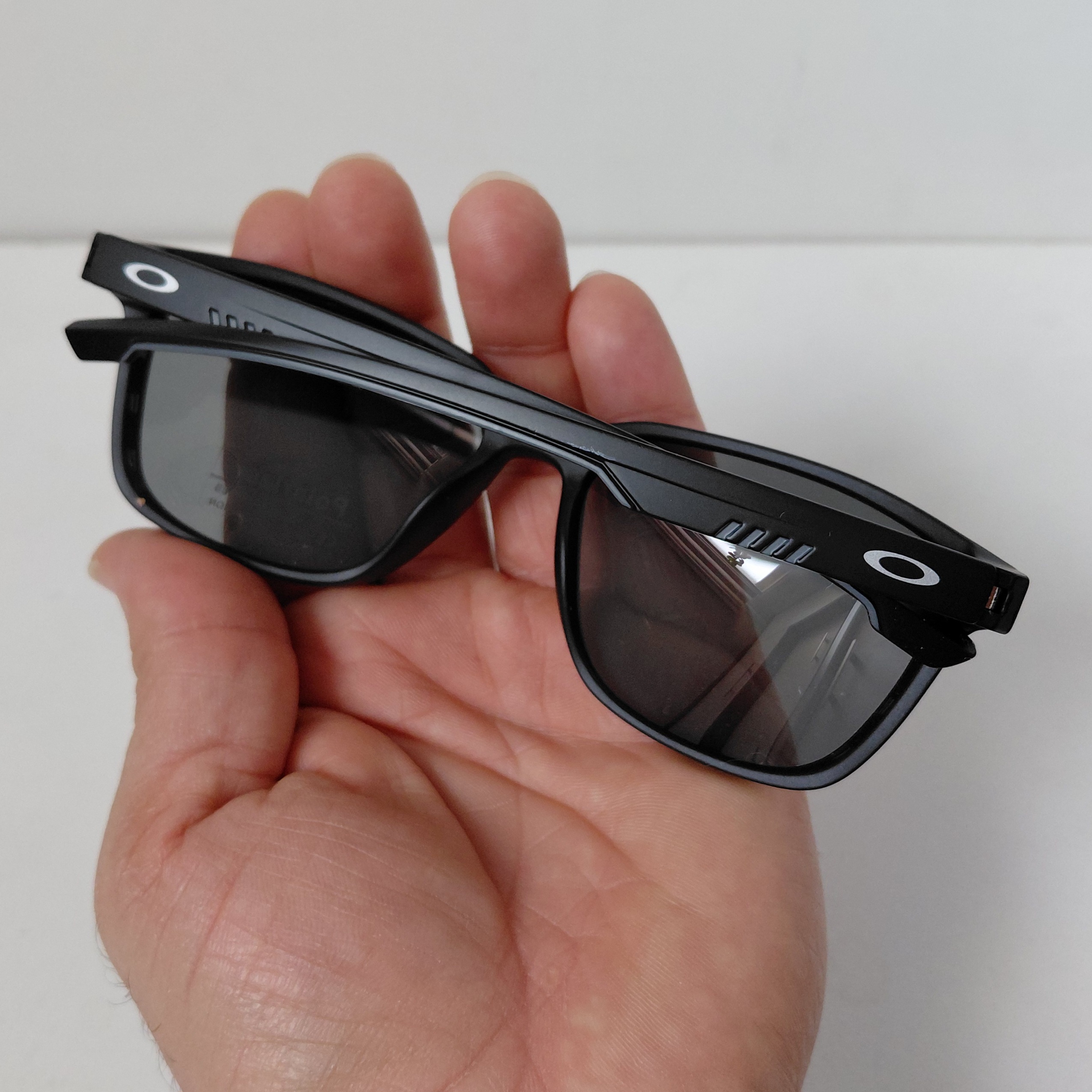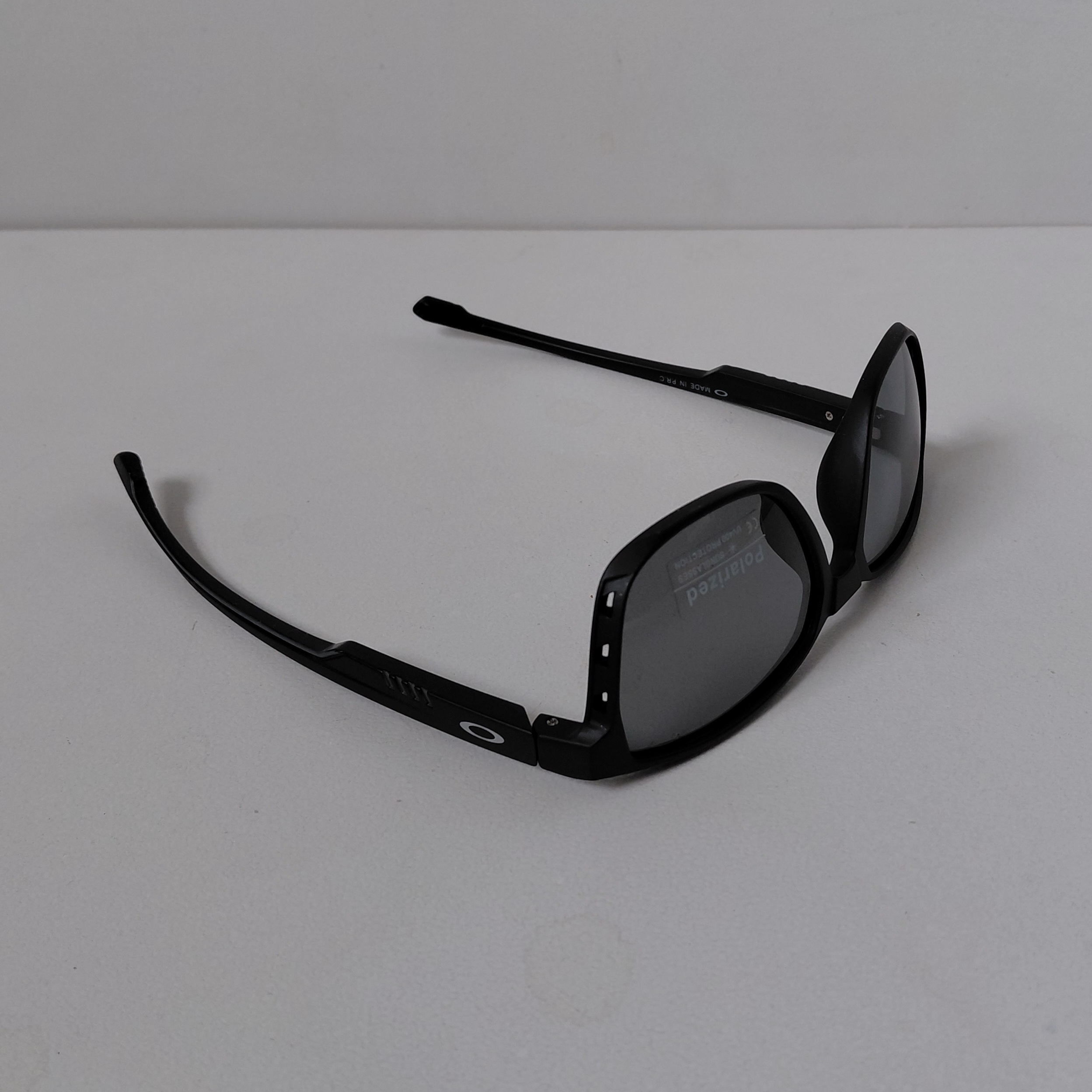 عینک آفتابی اوکلی مشکی با عدسی پلاریزه با سایز 145*18*57 که قسمت جلوی عینک از دسته تا دسته حدود 142 میلیمتر و ارتفاع عدسی حدود 42 میباشد.