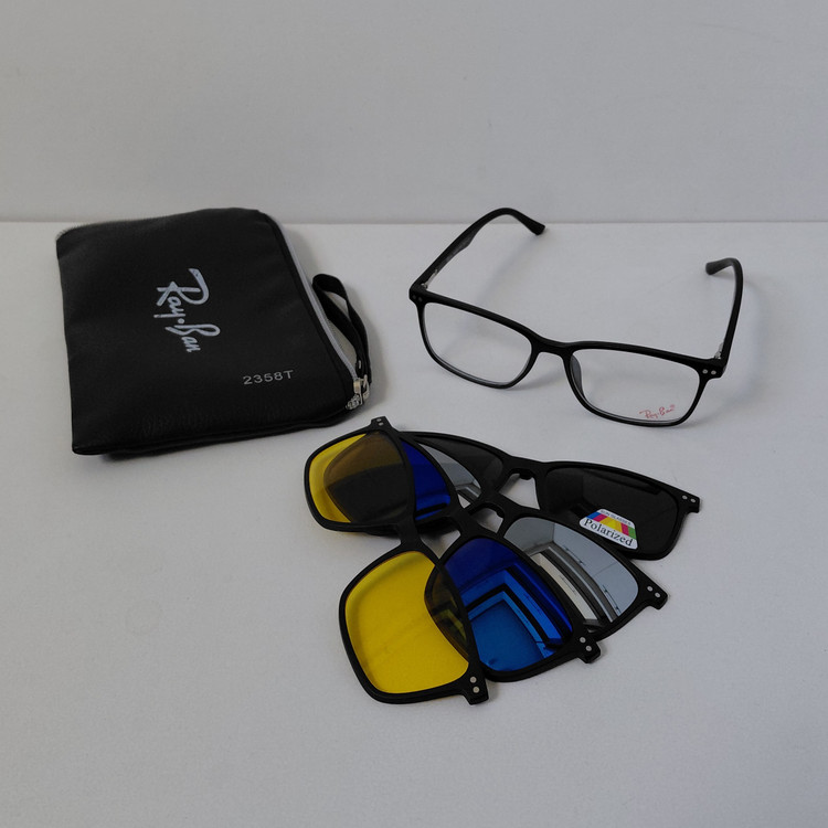 ✅️عینک کاوردار مدل 2358T با چهار کاور آفتابی مشکی پلاریزه و زرد شب و آبی رفلکس و نقره ای رفلکس