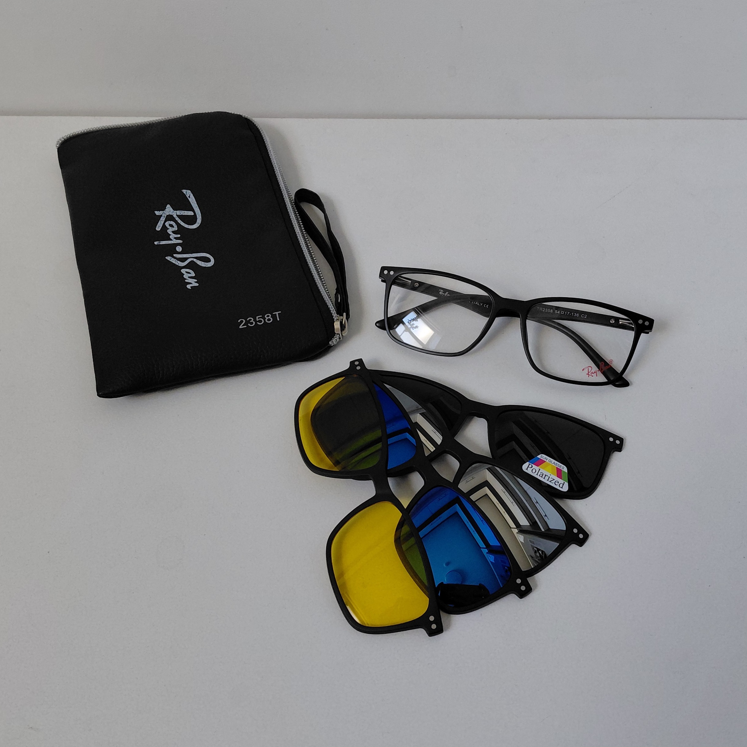 ✅️عینک کاوردار مدل 2358T با چهار کاور آفتابی مشکی پلاریزه و زرد شب و آبی رفلکس و نقره ای رفلکس